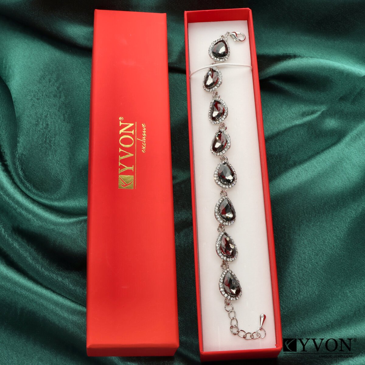Najnowsza kolekcja wieczorowa YVON. Bransoletka wykonane z metalu antyalergicznego oraz szkła fasetowanego. Długość 18 cm + regulacja. Szukaj do kompletu kolczyków o tym samym indeksie numerycznym.