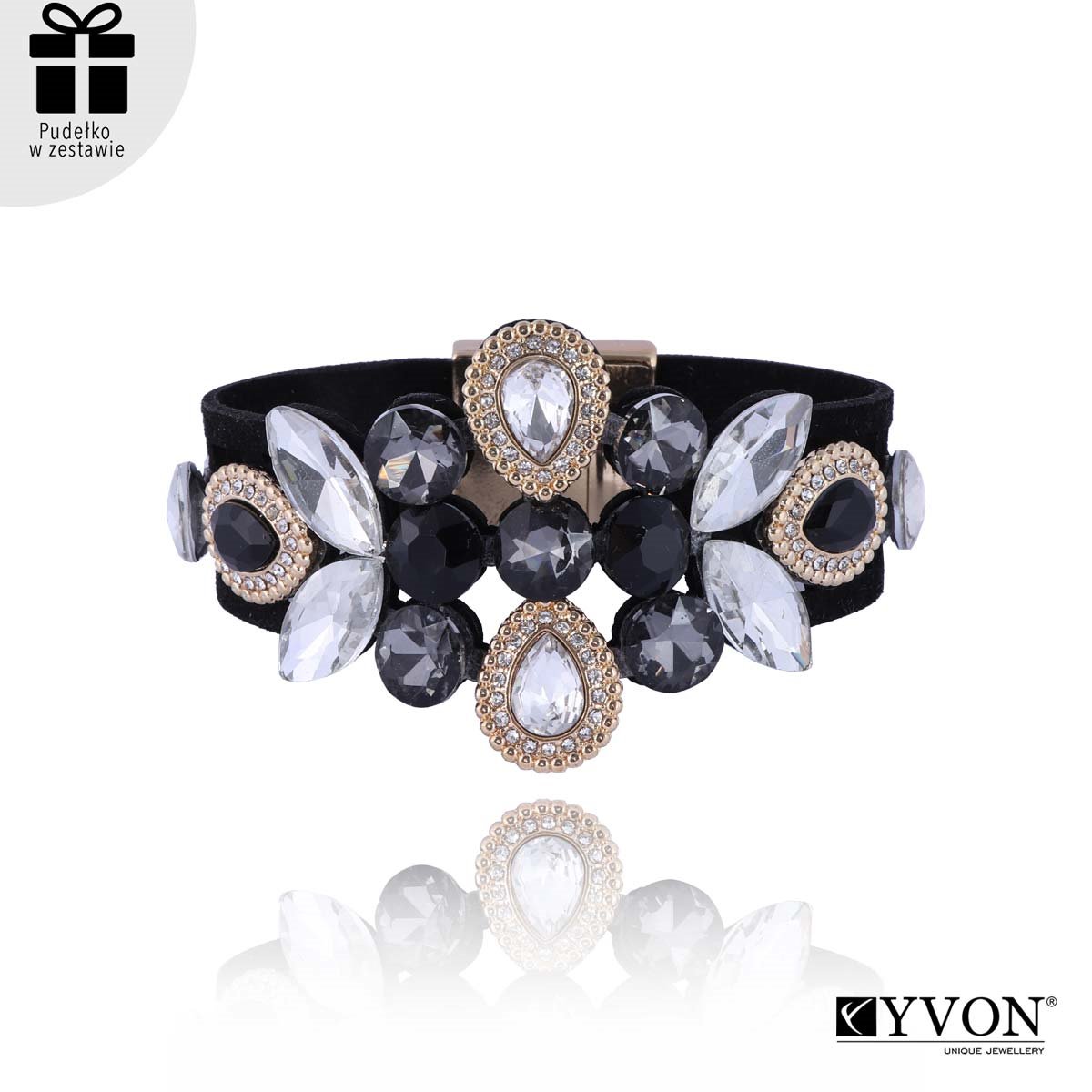 Efektowna wieczorowa bransoletka z kolekcji YVON MIDNIGHT. Najwyższa jakość wykonania w połączeniu z unikatowym wzornictwem tworzą przepiękną kompozycję, idealną do wieczorowych kreacji. Piękna kolorystyka i rozpraszające światło szkło fasetowane sprawią, że każda kobieta poczuje sie w nim wyjątkowo i jak prawdziwa księżniczka. Całość oczywiście w 100% antyalergiczna. Do kompletu przewidzieliśmy kolczyki (szukaj na stronie pod tymi samymi indeksami liczbowymi, z literką E z przodu). W ekskluzywnym pudełeczku GRATIS.