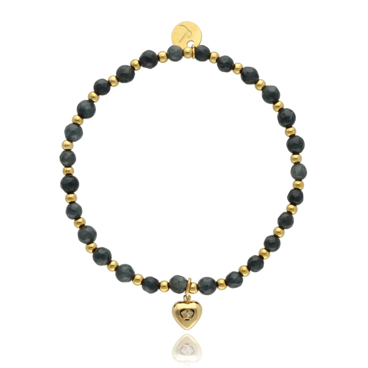 Delikatna bransoletka wykonana z agatu i kryształów, uzupełniona pozłacaną stalą szlachetną. Kamienie dodają całości głębi, a eleganckie złocenie subtelnie podkreśla kobiecy styl.