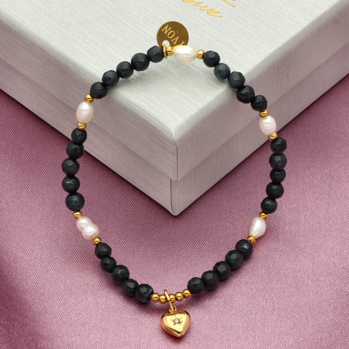 Delikatna bransoletka wykonana z agatu i pereł naturalnych, uzupełniona pozłacaną stalą szlachetną. Kamienie dodają całości głębi, a eleganckie złocenie subtelnie podkreśla kobiecy styl.