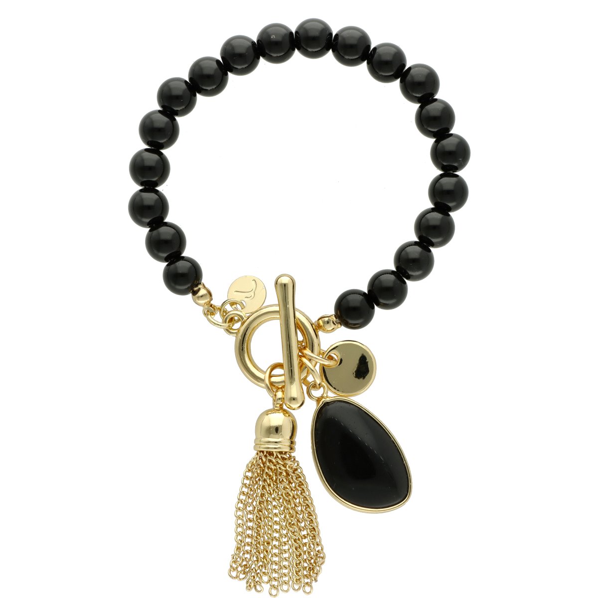 Stylowa i elegancka bransoletka z kamieni naturalnych. Wykonana z metalu hypoalergicznego (zamak) i naturalnego agatu czarnego.