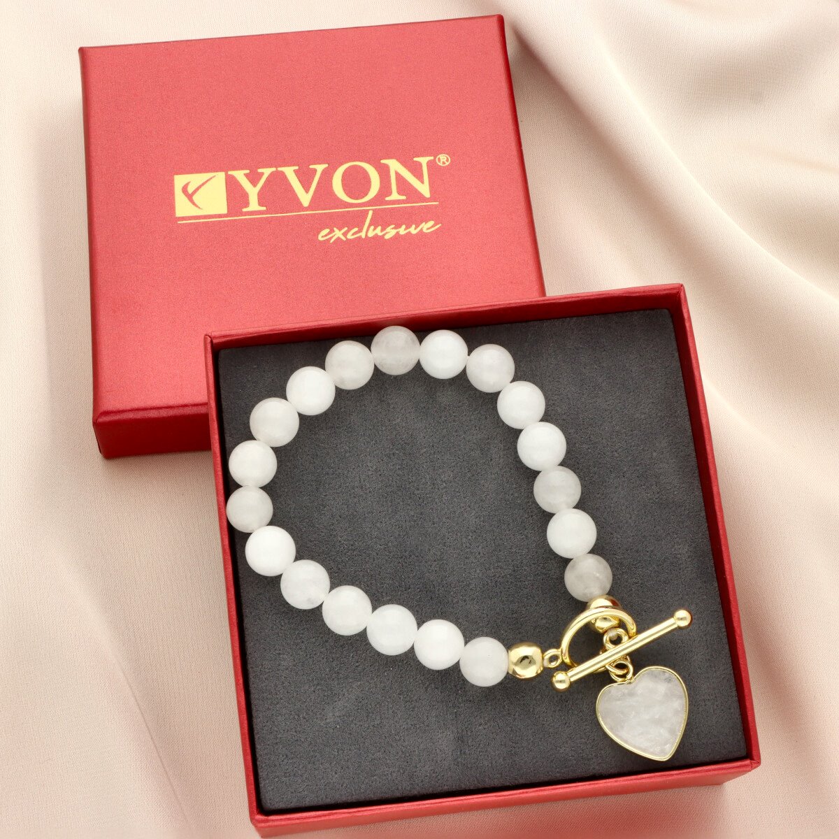 Subtelna bransoletka z naturalnym jadeitem mlecznym to eleganckie uzupełnienie zestawu. Gładko szlifowane kamienie o mlecznym odcieniu tworzą harmonijną, lekką kompozycję o ponadczasowym charakterze.
