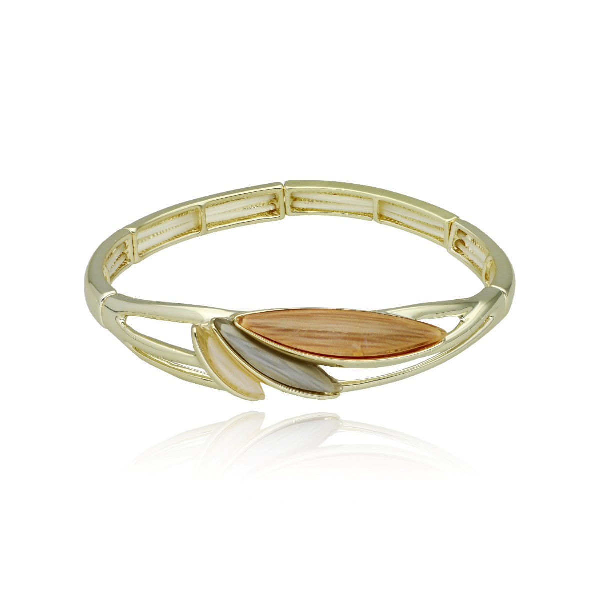 Elegancka bransoletka wykonana z metalu antyalergicznego i kolorowej żywicy. Rozmiar uniwersalny (na rozciągliwych gumkach). Szukaj do kompletu naszyjnika i kolczyków o tym samym indeksie numerycznym.