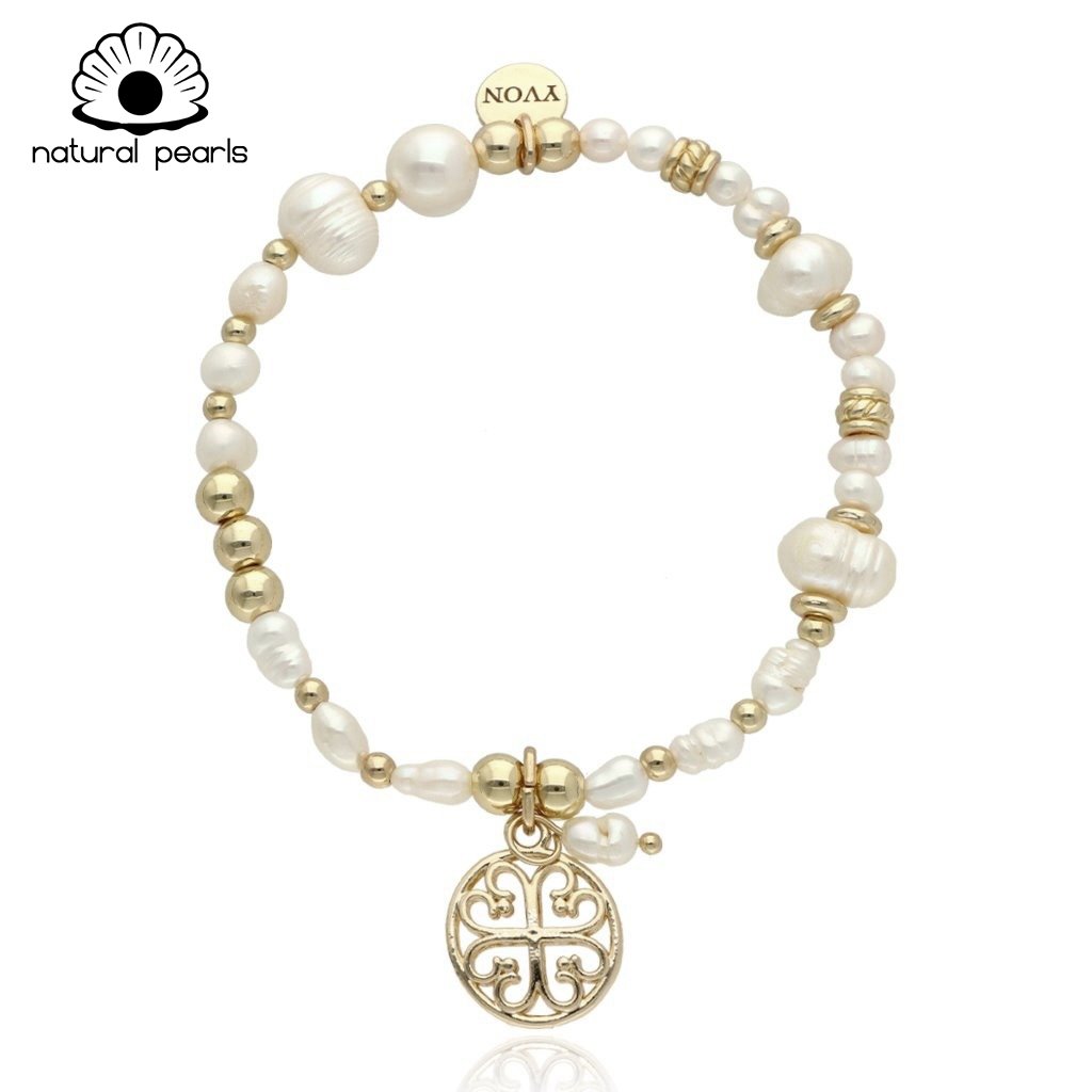 Bransoletka wykonana z NATURALNYCH PEREŁ SŁODKOWODNYCH. Każda perła ma unikalny kształt i delikatny połysk, charakterystyczny dla pereł naturalnych.