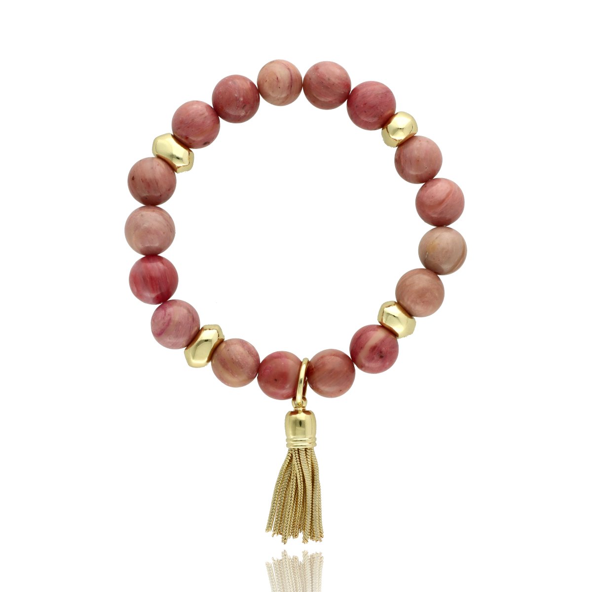 Stylowa bransoletka z naturalnym kamieniem rodonit to eleganckie uzupełnienie zestawu. Gładko szlifowane kamienie o różowo-pudrowym odcieniu z naturalnymi przejściami tworzą spójną i ponadczasową kompozycję.