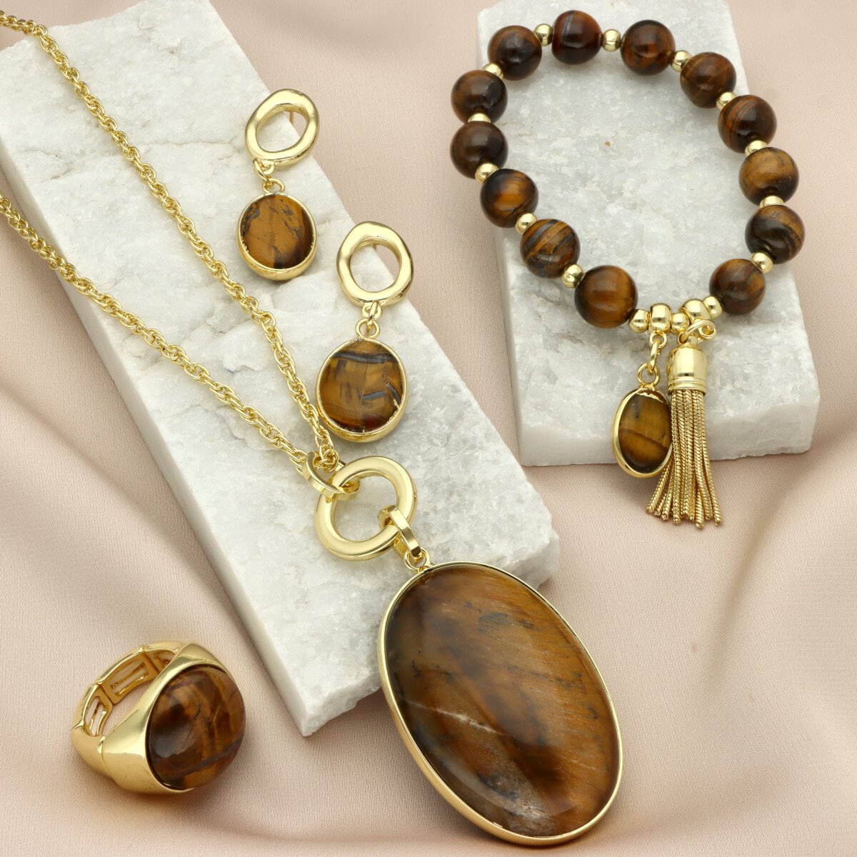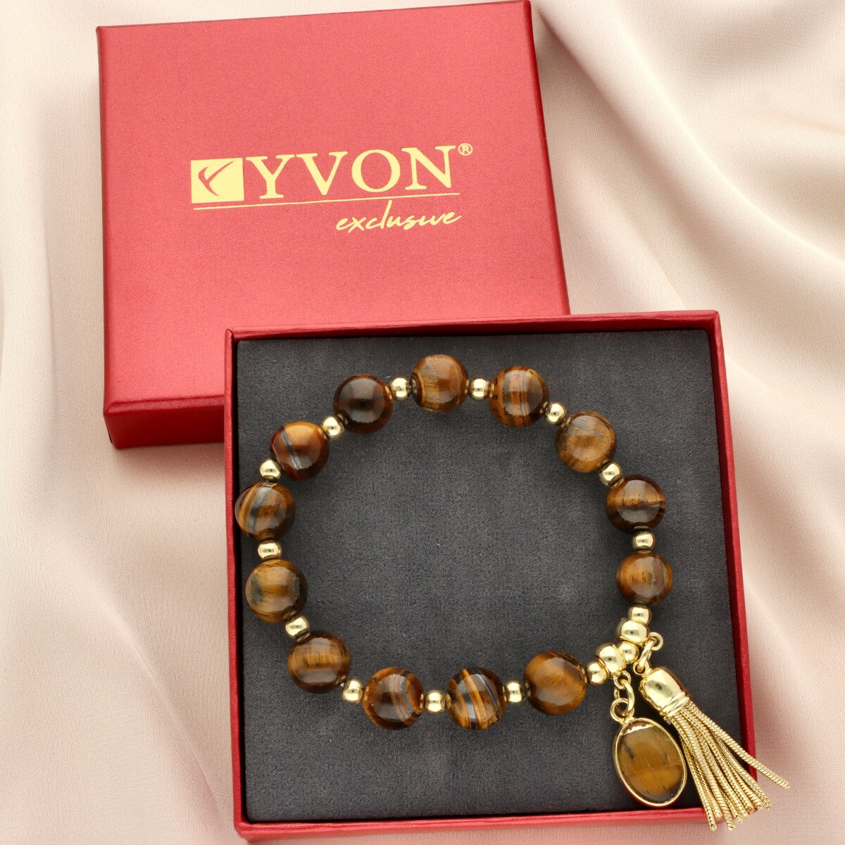Stylowa bransoletka z naturalnym kamieniem tygrysie oko (Tiger Eye) w klasycznej formie kulek o głębokim, złoto-brązowym odcieniu. Kamienie pięknie odbijają światło, tworząc charakterystyczny efekt „kociego oka”.