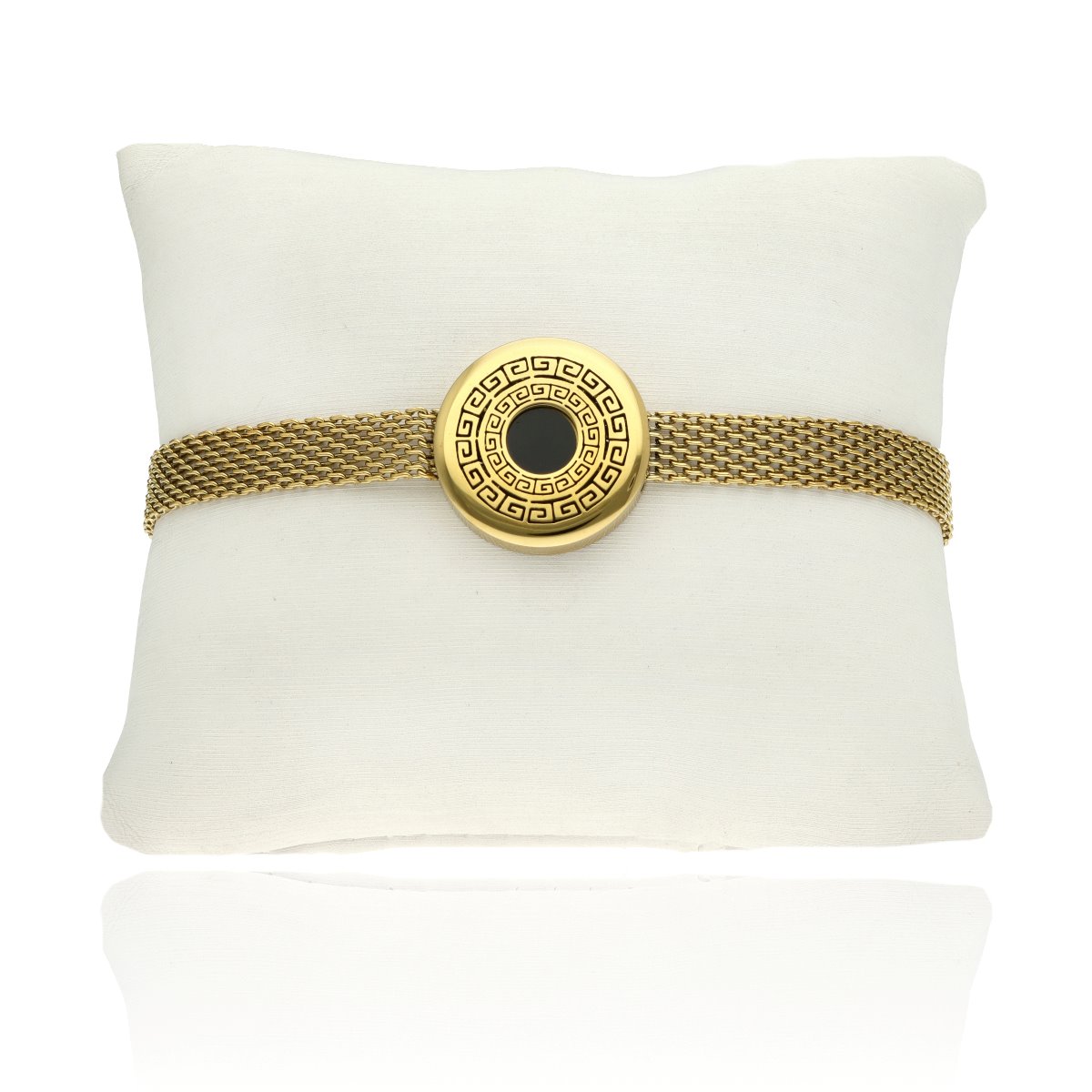 Bransoletka ze stali szlachetnej 316L, pozłacanej 16-karatowym złotem. Wyróżnia się trwałością, odpornością na ścieranie oraz hipoalergicznymi właściwościami.