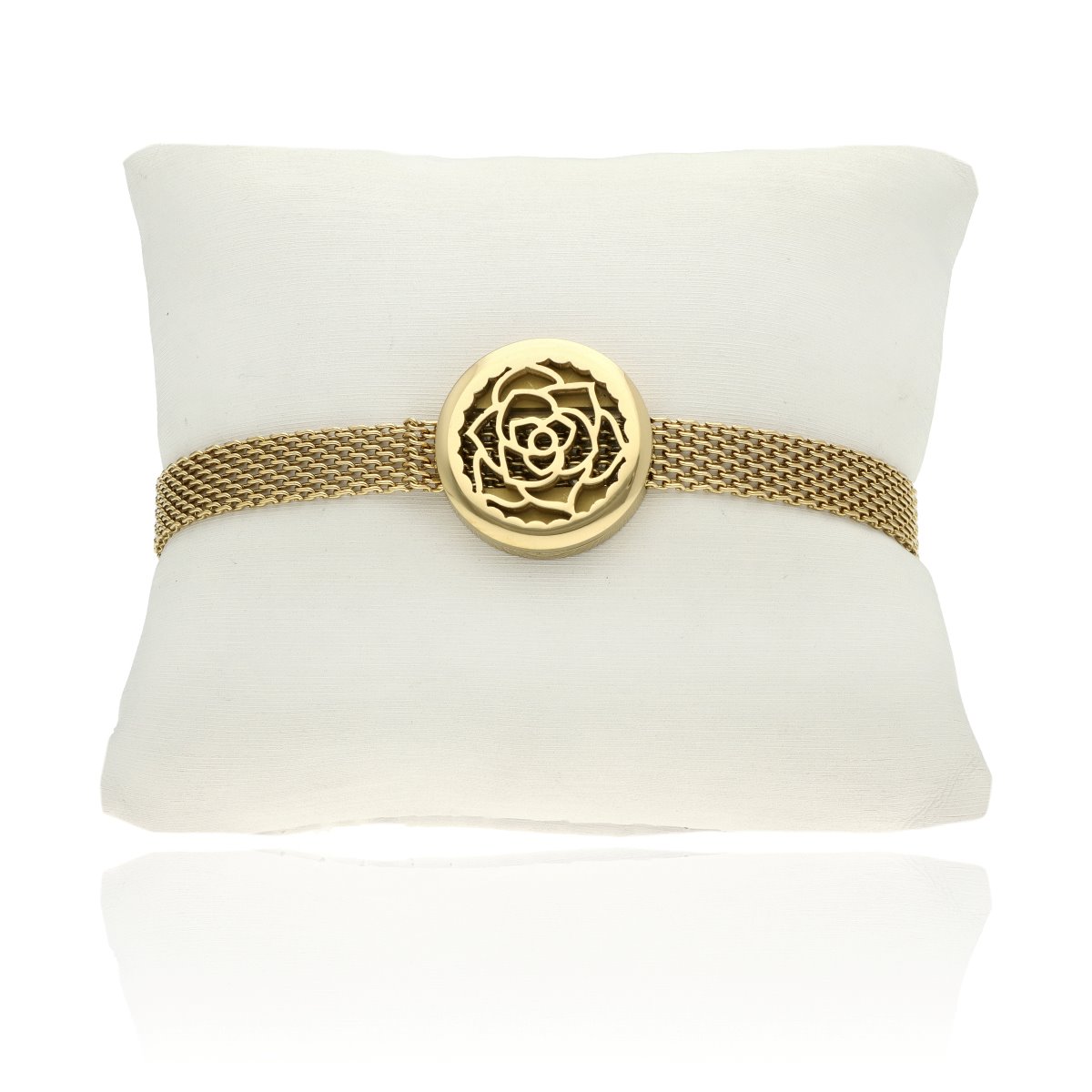 Bransoletka ze stali szlachetnej 316L, pozłacanej 16-karatowym złotem. Wyróżnia się trwałością, odpornością na ścieranie oraz hipoalergicznymi właściwościami.