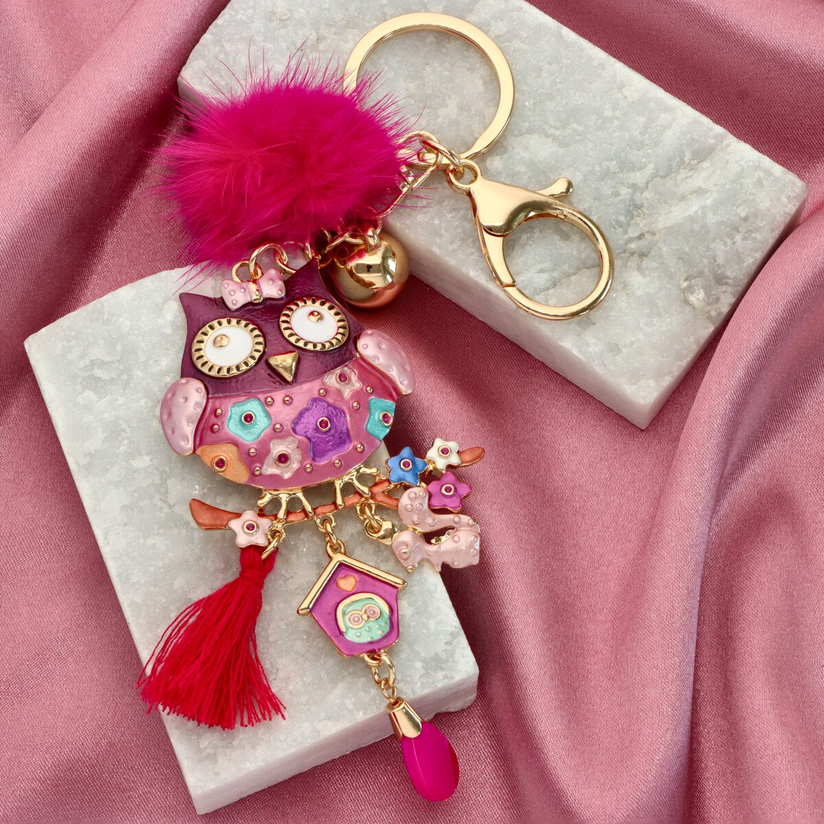 Ten kolorowy brelok w kształcie uroczej sowy to energetyczny i praktyczny dodatek, który ozdobi Twoje klucze, torebkę czy szlufkę od spodni. Wykonany z barwnej emalii i żywicy, zachwyca lekkością i radosnym designem. Najlepiej prezentuje się w komplecie z dopasowaną broszką na magnes, która – dzięki magnetycznemu zapięciu – nie niszczy ubrań i może być przypięta praktycznie wszędzie. Razem tworzą efektowny duet idealny na prezent lub jako detal w stylizacji! Wielkość zawieszki: ok. 6 cm. Długość całkowita: 14 cm.