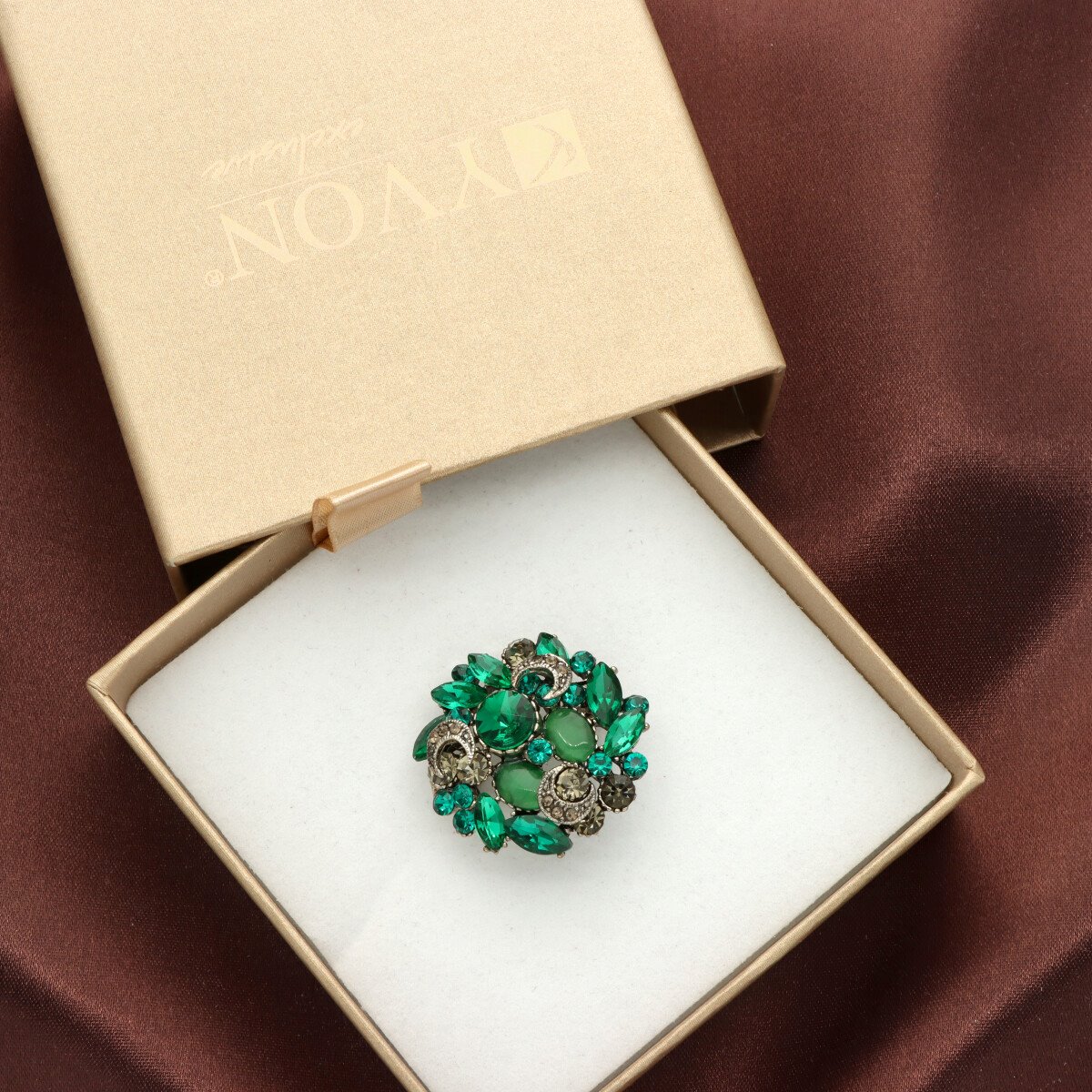 Elegancka broszka wykonana z wysokiej jakości szkła fasetowanego oraz metalu hypoalergicznego. Subtelny dodatek, który idealnie wpisuje się w jesienne stylizacje. Każda broszka pakowana jest w prześliczne pudełeczko z wysuwaną szufladką, dzięki czemu świetnie sprawdzi się również jako gotowy prezent – bez potrzeby dodatkowego opakowywania.