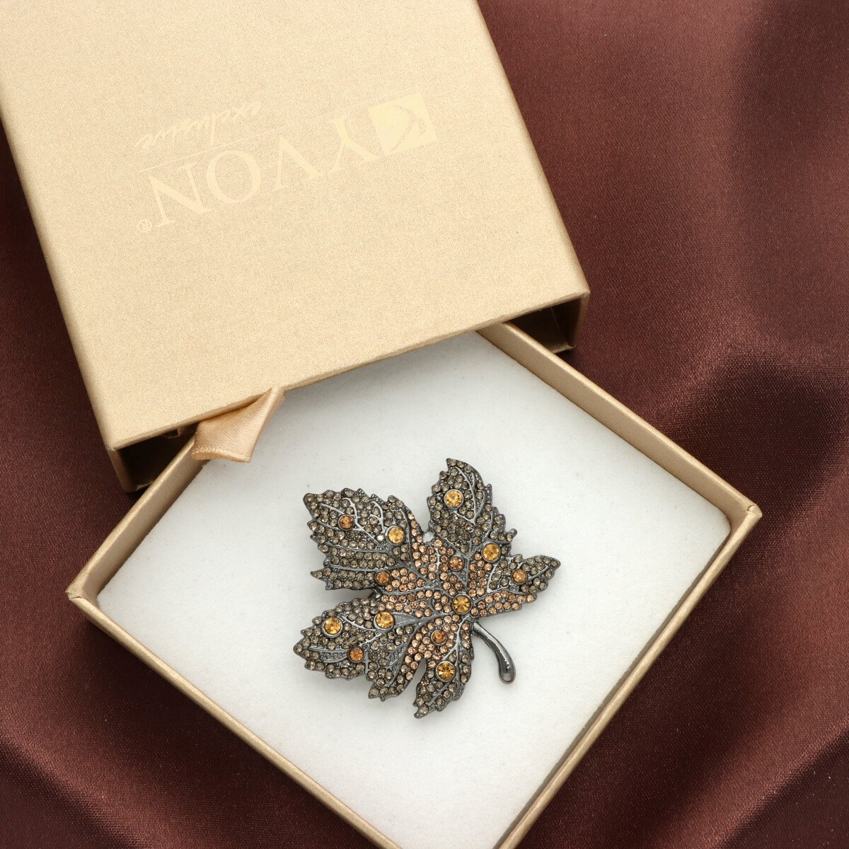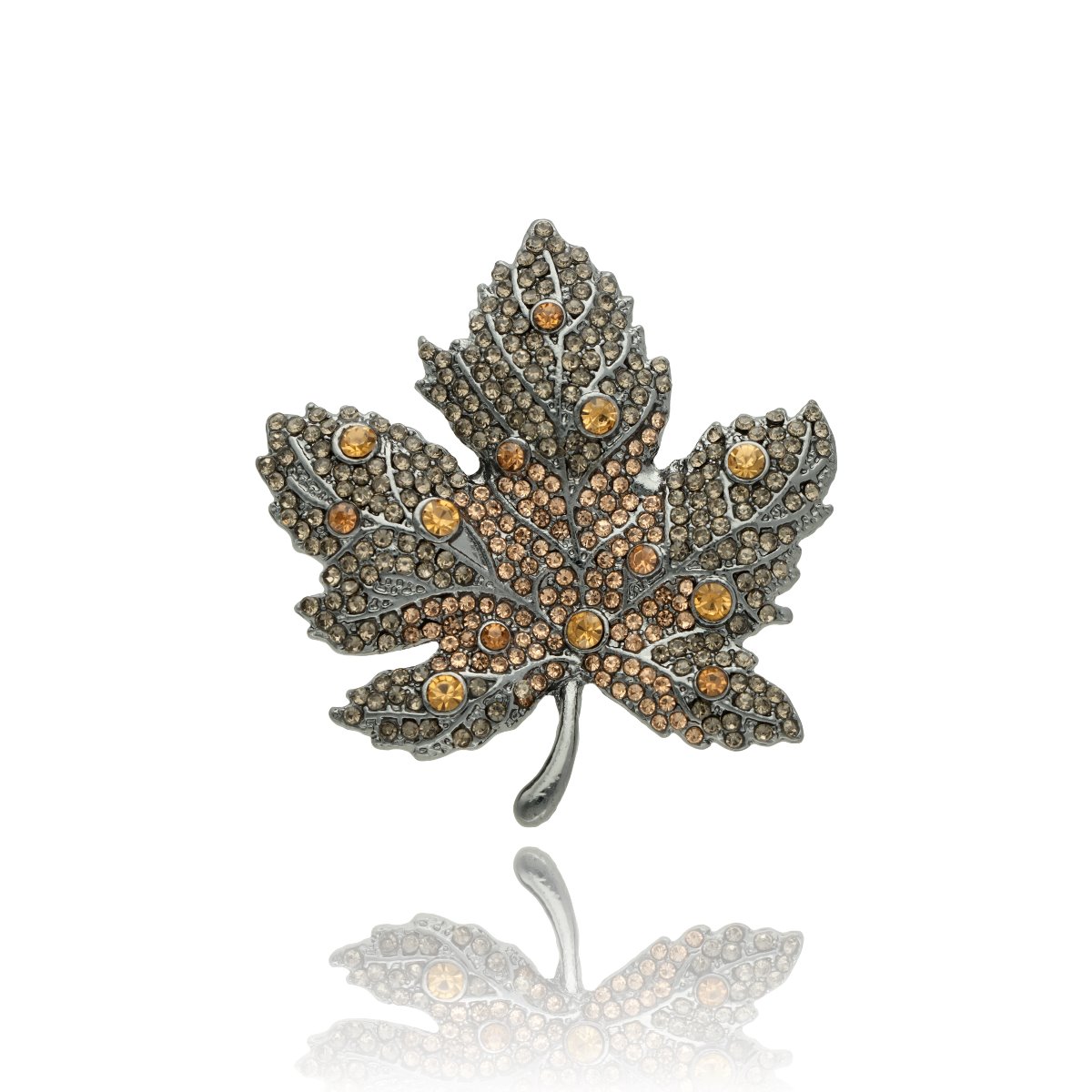 Elegancka broszka wykonana z wysokiej jakości szkła fasetowanego oraz metalu hypoalergicznego. Subtelny dodatek, który idealnie wpisuje się w jesienne stylizacje. Każda broszka pakowana jest w prześliczne pudełeczko z wysuwaną szufladką, dzięki czemu świetnie sprawdzi się również jako gotowy prezent – bez potrzeby dodatkowego opakowywania.