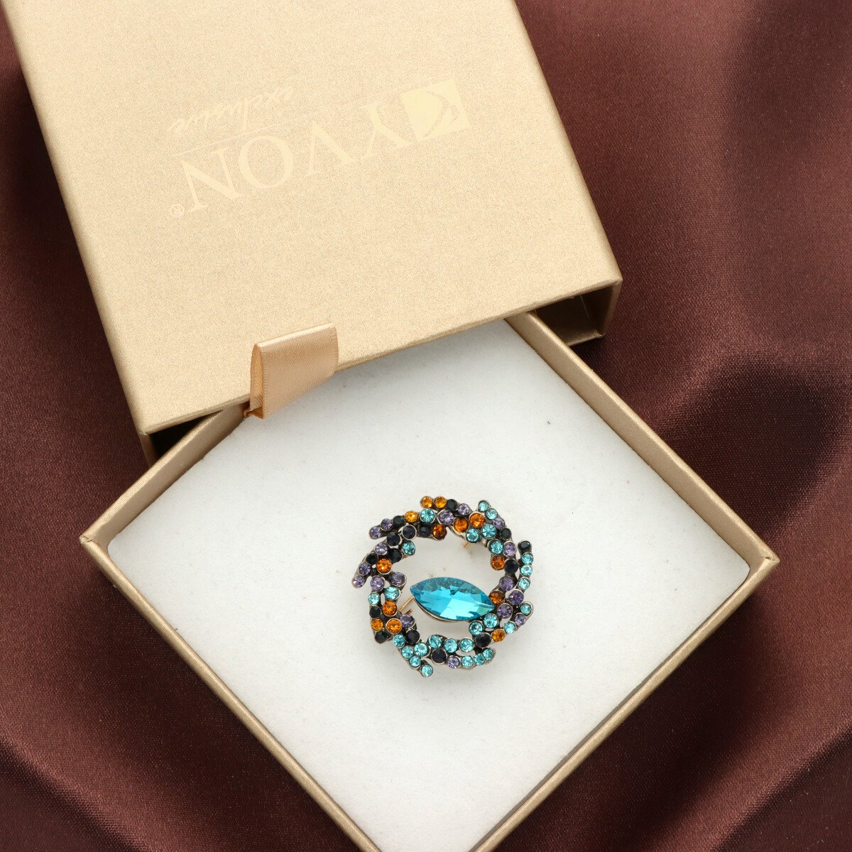 Elegancka broszka wykonana z wysokiej jakości szkła fasetowanego oraz metalu hypoalergicznego. Subtelny dodatek, który idealnie wpisuje się w jesienne stylizacje. Każda broszka pakowana jest w prześliczne pudełeczko z wysuwaną szufladką, dzięki czemu świetnie sprawdzi się również jako gotowy prezent – bez potrzeby dodatkowego opakowywania.
