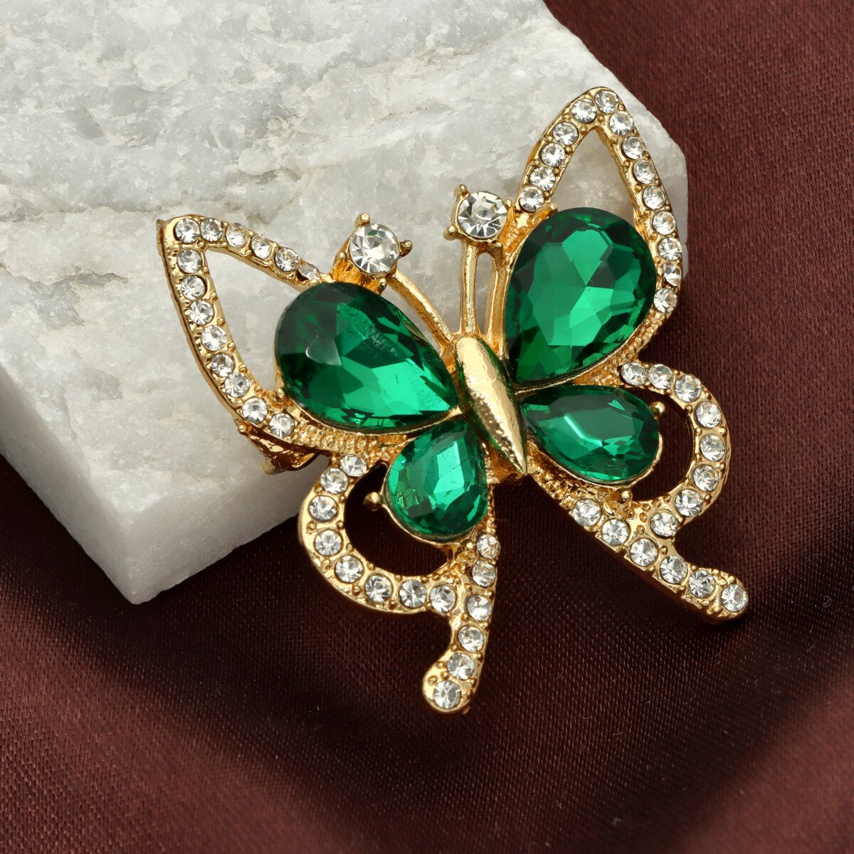 Elegancka broszka wykonana z wysokiej jakości szkła fasetowanego oraz metalu hypoalergicznego. Subtelny dodatek, który idealnie wpisuje się w jesienne stylizacje.