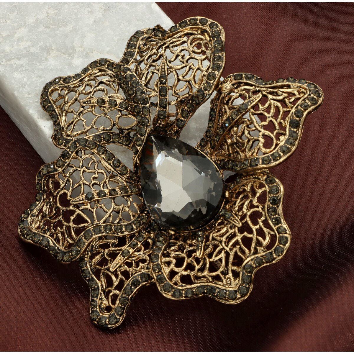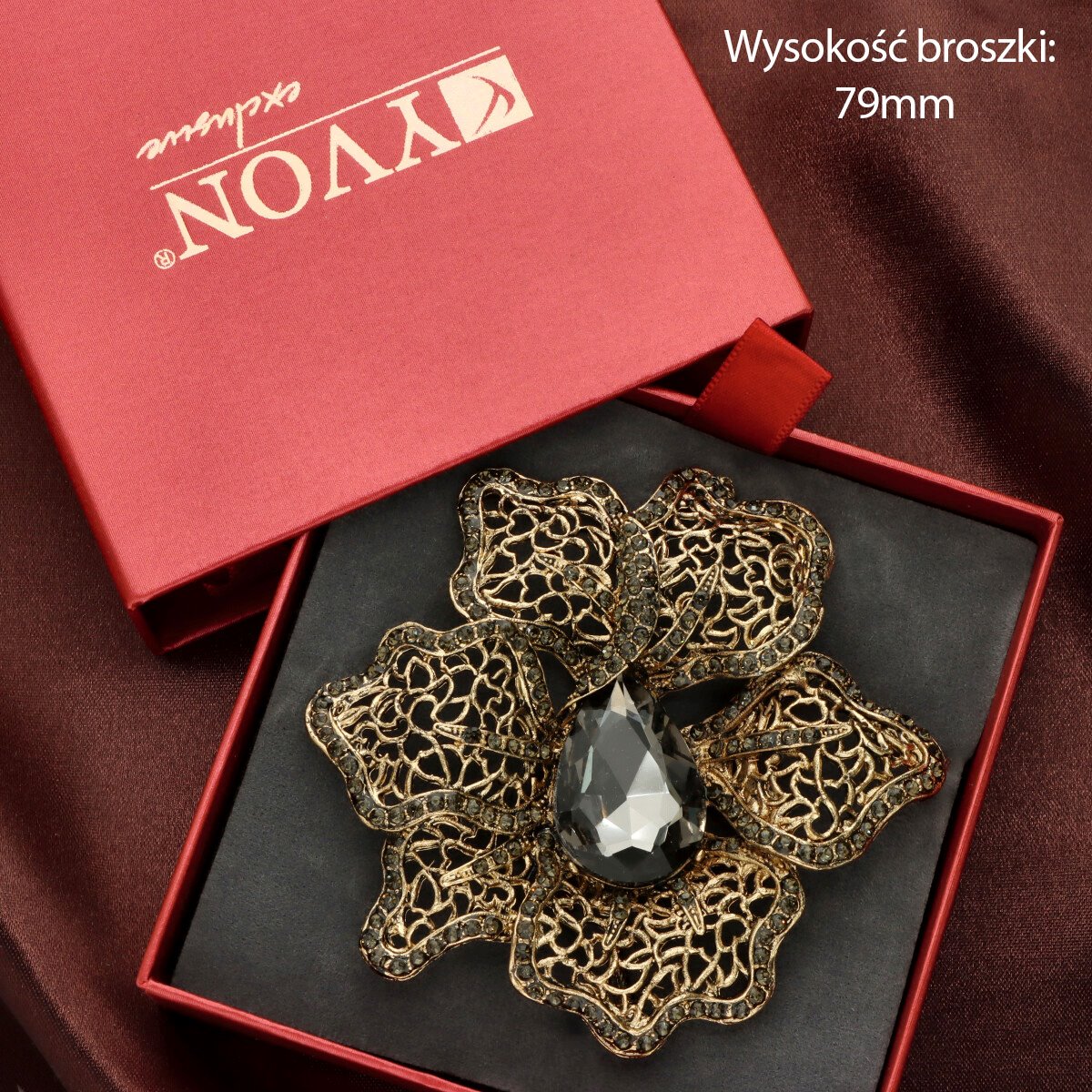 Elegancka broszka wykonana z wysokiej jakości szkła fasetowanego oraz metalu hypoalergicznego. Subtelny dodatek, który idealnie wpisuje się w jesienne stylizacje. Każda broszka pakowana jest w prześliczne pudełeczko z wysuwaną szufladką, dzięki czemu świetnie sprawdzi się również jako gotowy prezent.