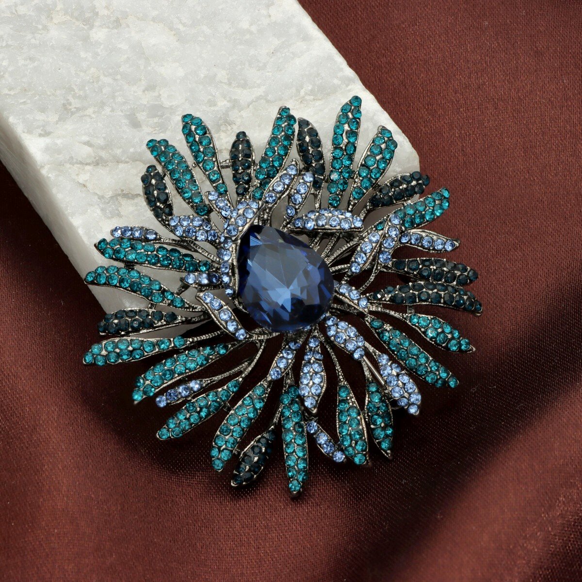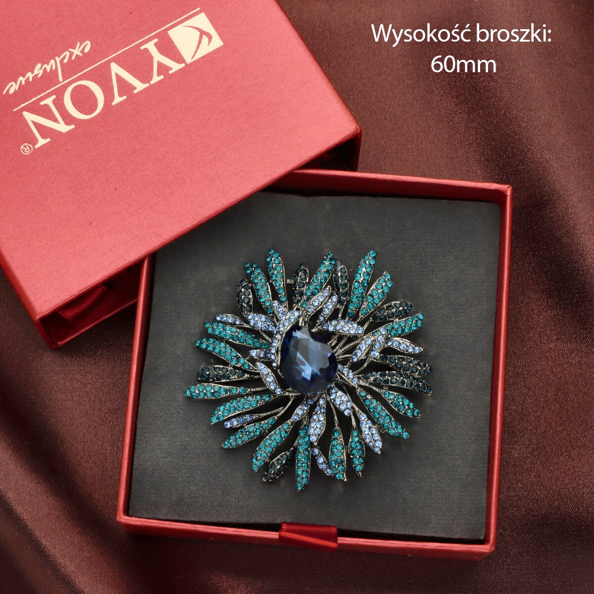 Elegancka broszka wykonana z wysokiej jakości szkła fasetowanego oraz metalu hypoalergicznego. Subtelny dodatek, który idealnie wpisuje się w jesienne stylizacje.