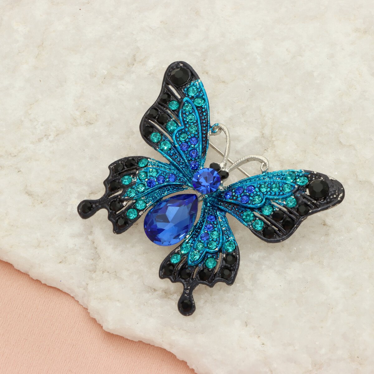 Urocza broszka wykonana z antyalergicznego metalu i kryształków. W kolorowym pudełeczku gratis.