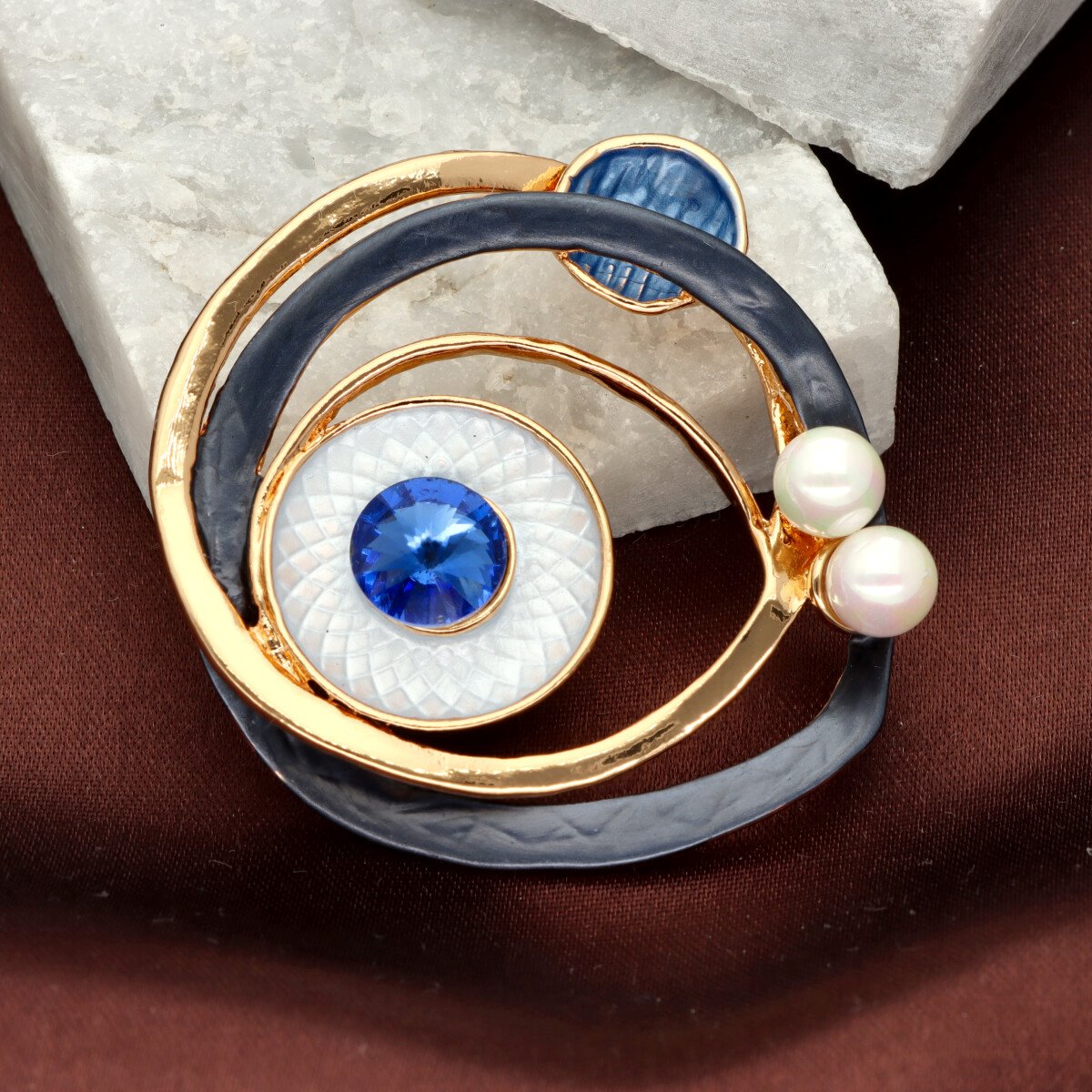 Broszka na magnes z kolekcji YVON biżuteria artystyczna, wykonana z metalu hipoalergicznego i zdobiona ręcznie nanoszoną emalią. Średnica broszki ok. 5 cm. Mocny magnes umożliwia przypięcie bez ryzyka uszkodzenia tkaniny – idealna do płaszczy, szali i torebek. Każdy egzemplarz pakowany jest w eleganckie pudełko prezentowe YVON.