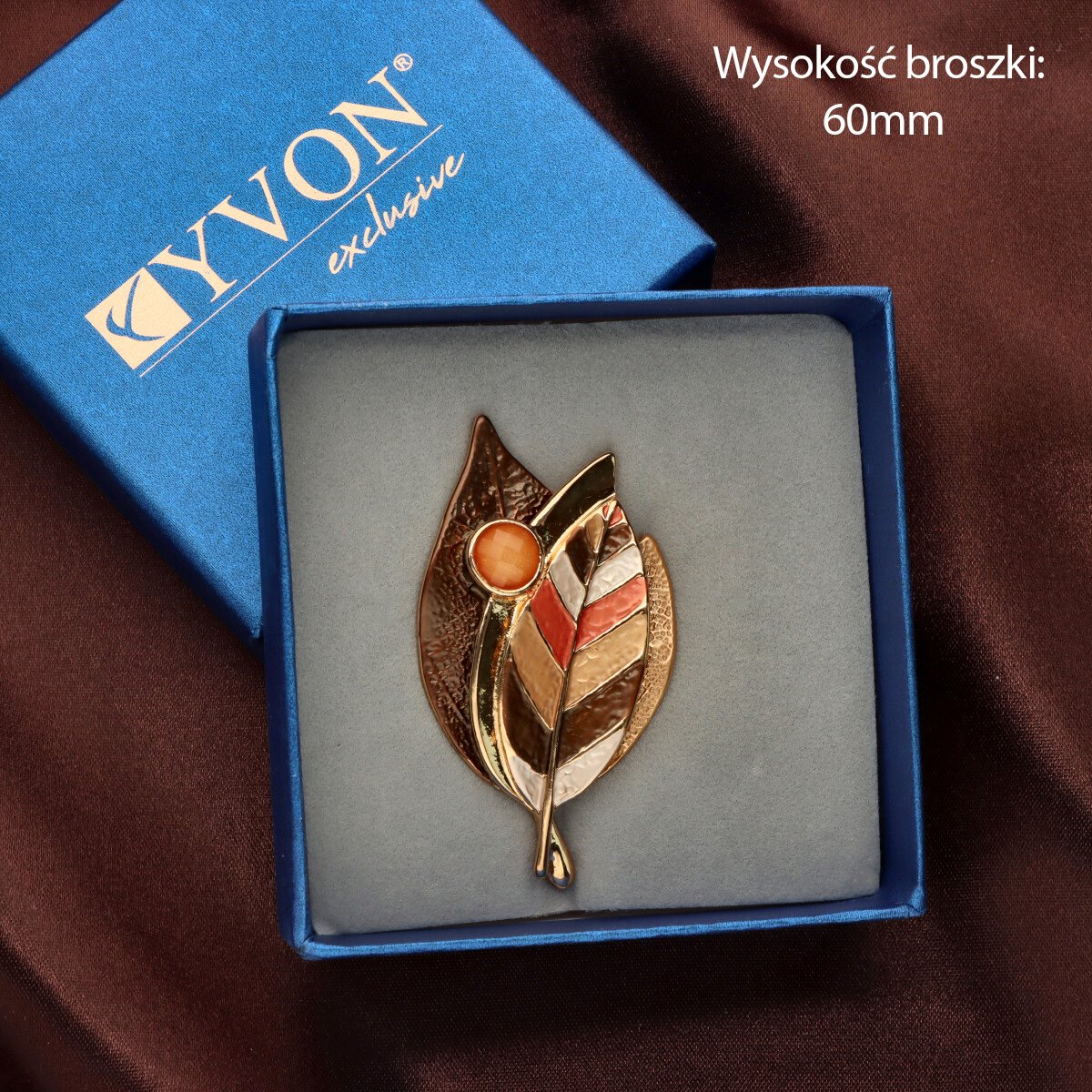 Broszka na magnes z kolekcji YVON biżuteria artystyczna, wykonana z metalu hipoalergicznego, żywicy i zdobiona ręcznie nanoszoną emalią. Średnica broszki ok. 5 cm. Mocny magnes umożliwia przypięcie bez ryzyka uszkodzenia tkaniny – idealna do płaszczy, szali i torebek. Każdy egzemplarz pakowany jest w eleganckie pudełko prezentowe YVON.