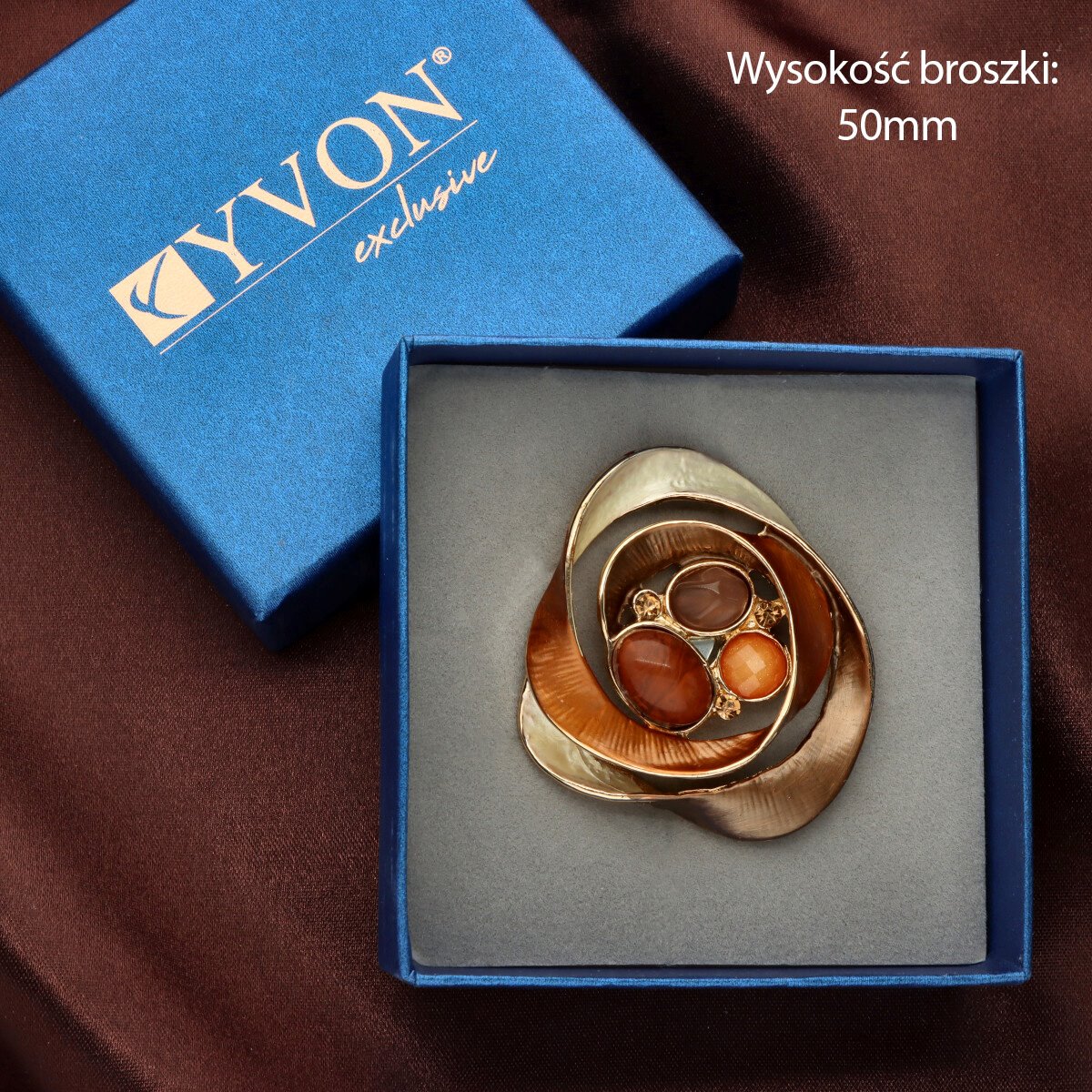 Broszka na magnes z kolekcji YVON biżuteria artystyczna, wykonana z metalu hipoalergicznego i zdobiona ręcznie nanoszoną emalią. Średnica broszki ok. 5 cm. Mocny magnes umożliwia przypięcie bez ryzyka uszkodzenia tkaniny – idealna do płaszczy, szali i torebek. Każdy egzemplarz pakowany jest w eleganckie pudełko prezentowe YVON.