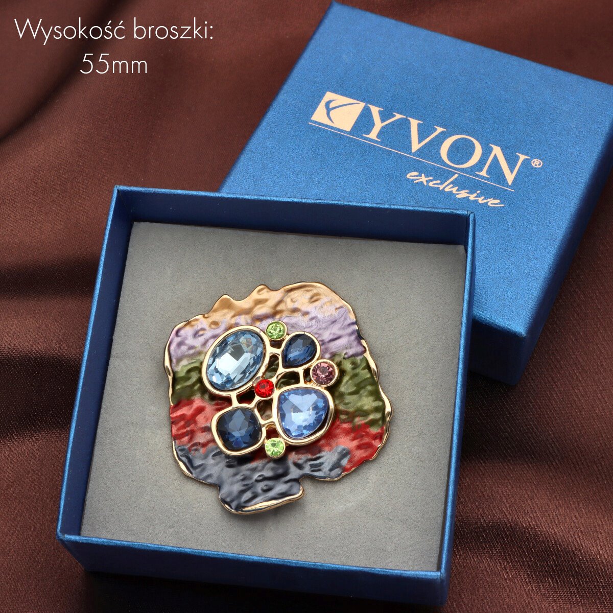 Broszka na magnes z kolekcji YVON biżuteria artystyczna, wykonana z metalu hipoalergicznego i zdobiona ręcznie nanoszoną emalią. Średnica broszki ok. 5 cm. Mocny magnes umożliwia przypięcie bez ryzyka uszkodzenia tkaniny – idealna do płaszczy, szali i torebek. Każdy egzemplarz pakowany jest w eleganckie pudełko prezentowe YVON.