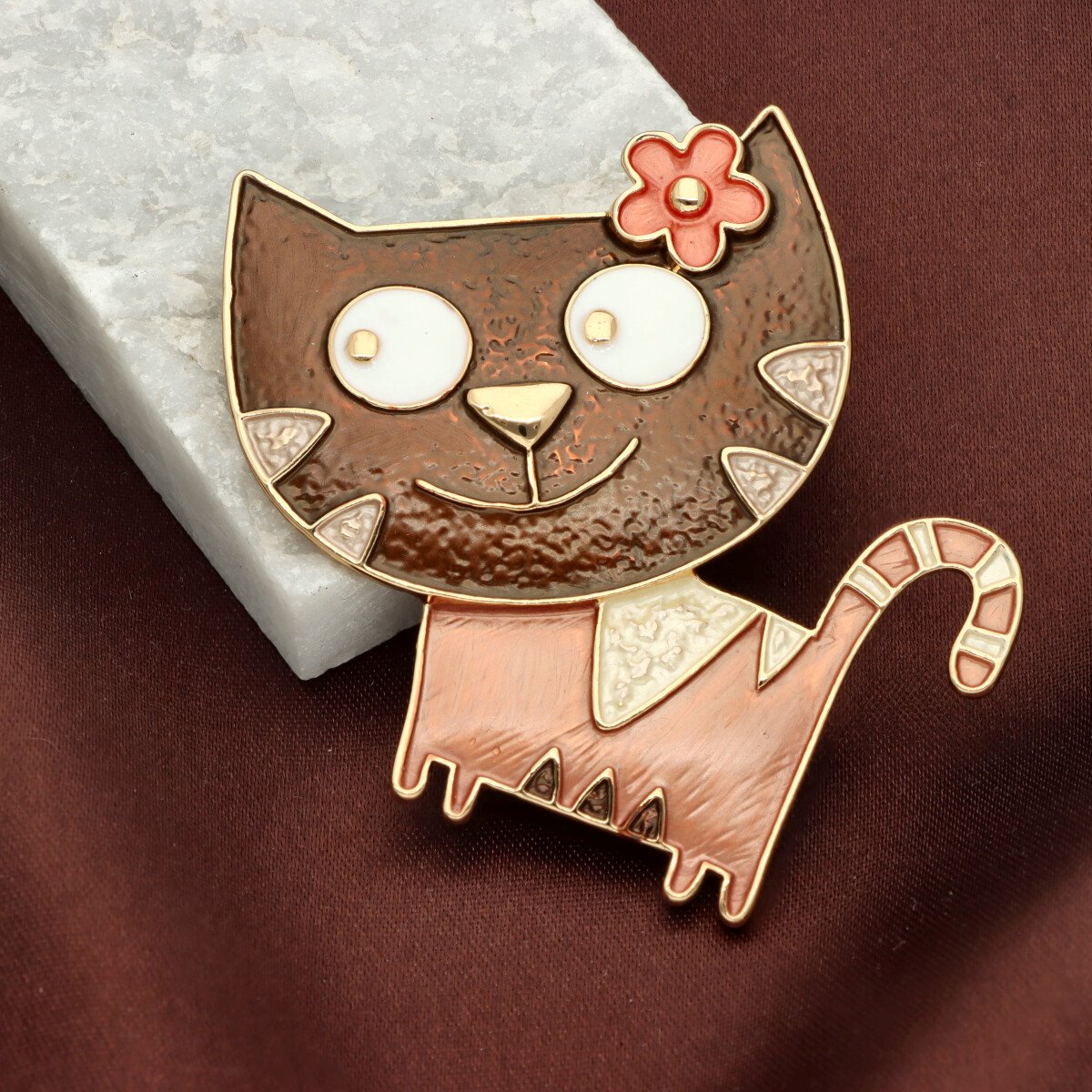 Broszka na magnes z kolekcji YVON biżuteria artystyczna, wykonana z metalu hipoalergicznego i zdobiona ręcznie nanoszoną emalią. Średnica broszki ok. 5 cm. Mocny magnes umożliwia przypięcie bez ryzyka uszkodzenia tkaniny – idealna do płaszczy, szali i torebek. Każdy egzemplarz pakowany jest w eleganckie pudełko prezentowe YVON.