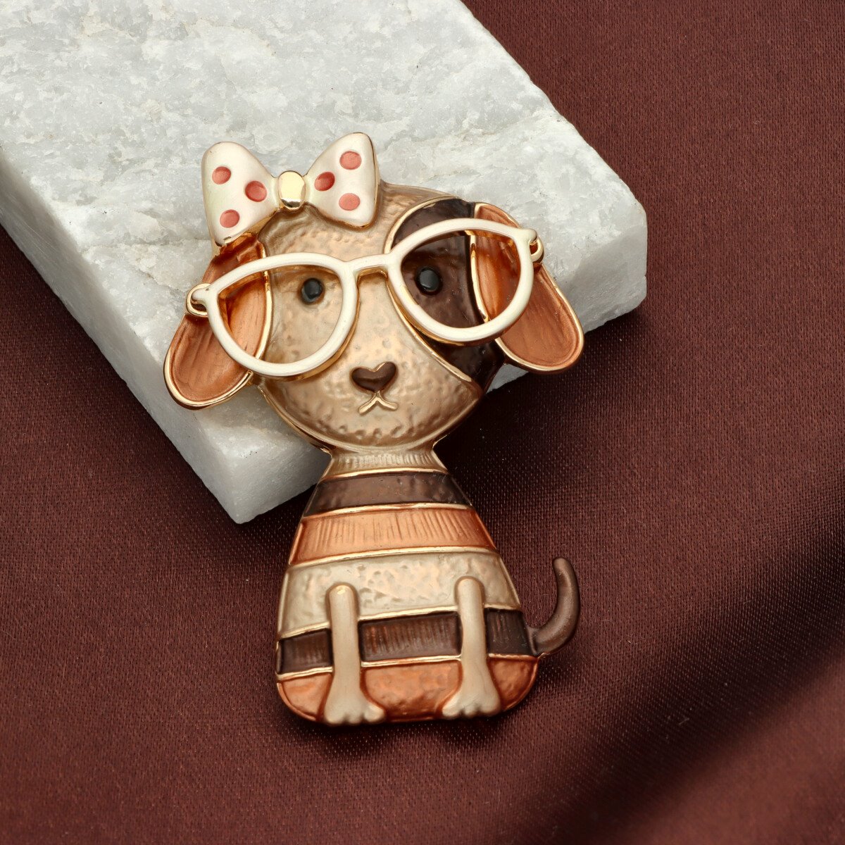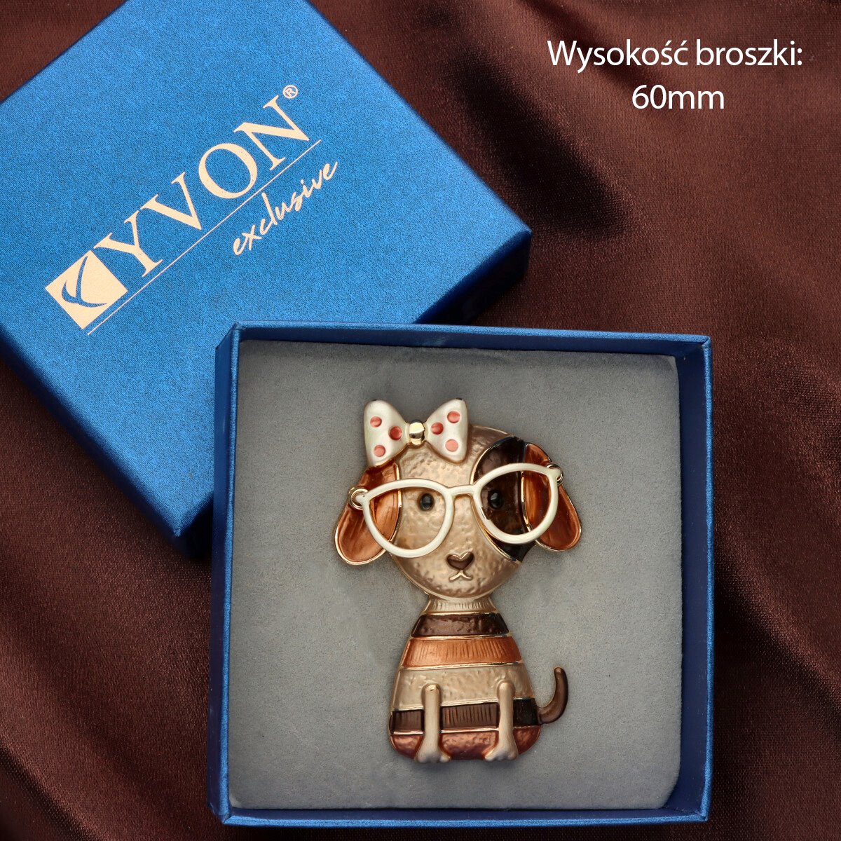 Broszka na magnes z kolekcji YVON biżuteria artystyczna, wykonana z metalu hipoalergicznego i zdobiona ręcznie nanoszoną emalią. Średnica broszki ok. 5 cm. Mocny magnes umożliwia przypięcie bez ryzyka uszkodzenia tkaniny – idealna do płaszczy, szali i torebek. Każdy egzemplarz pakowany jest w eleganckie pudełko prezentowe YVON.