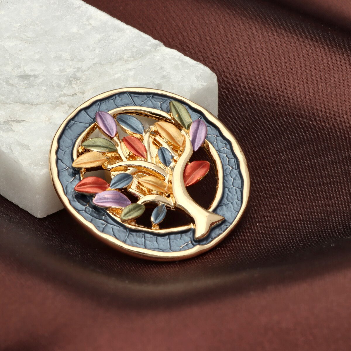 Broszka na magnes z kolekcji YVON biżuteria artystyczna, wykonana z metalu hipoalergicznego i zdobiona ręcznie nanoszoną emalią. Średnica broszki ok. 5 cm. Mocny magnes umożliwia przypięcie bez ryzyka uszkodzenia tkaniny – idealna do płaszczy, szali i torebek. Każdy egzemplarz pakowany jest w eleganckie pudełko prezentowe YVON.