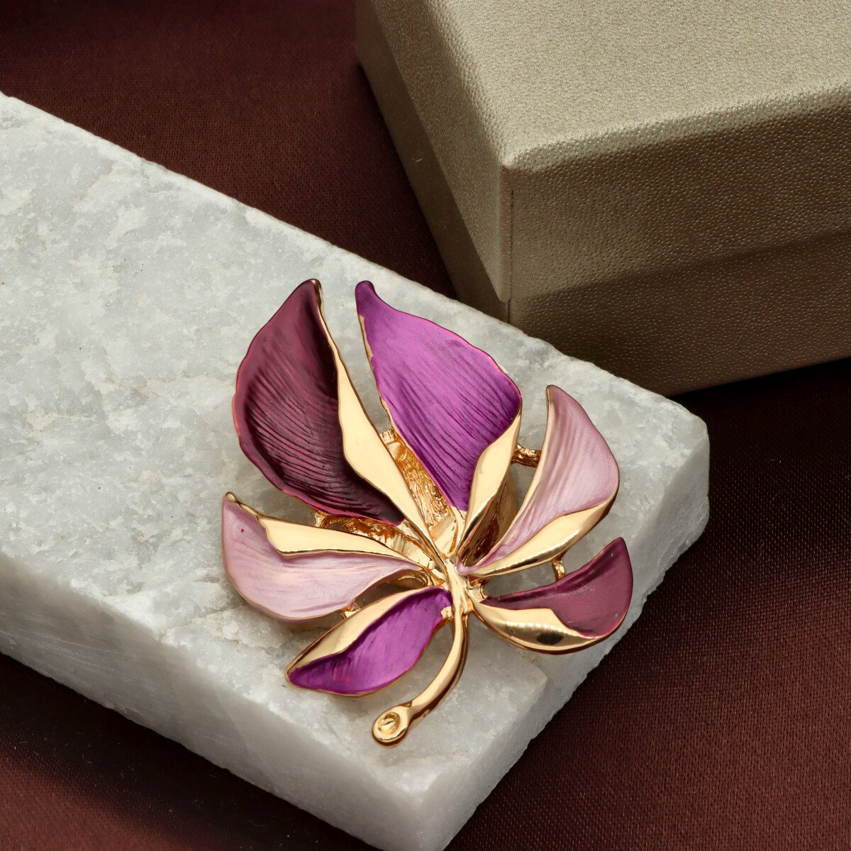 Broszka na magnes z kolekcji YVON biżuteria artystyczna, wykonana z metalu hipoalergicznego i zdobiona ręcznie nanoszoną emalią. Średnica broszki ok. 5 cm. Mocny magnes umożliwia przypięcie bez ryzyka uszkodzenia tkaniny – idealna do płaszczy, szali i torebek. Każdy egzemplarz pakowany jest w eleganckie pudełko prezentowe YVON.
