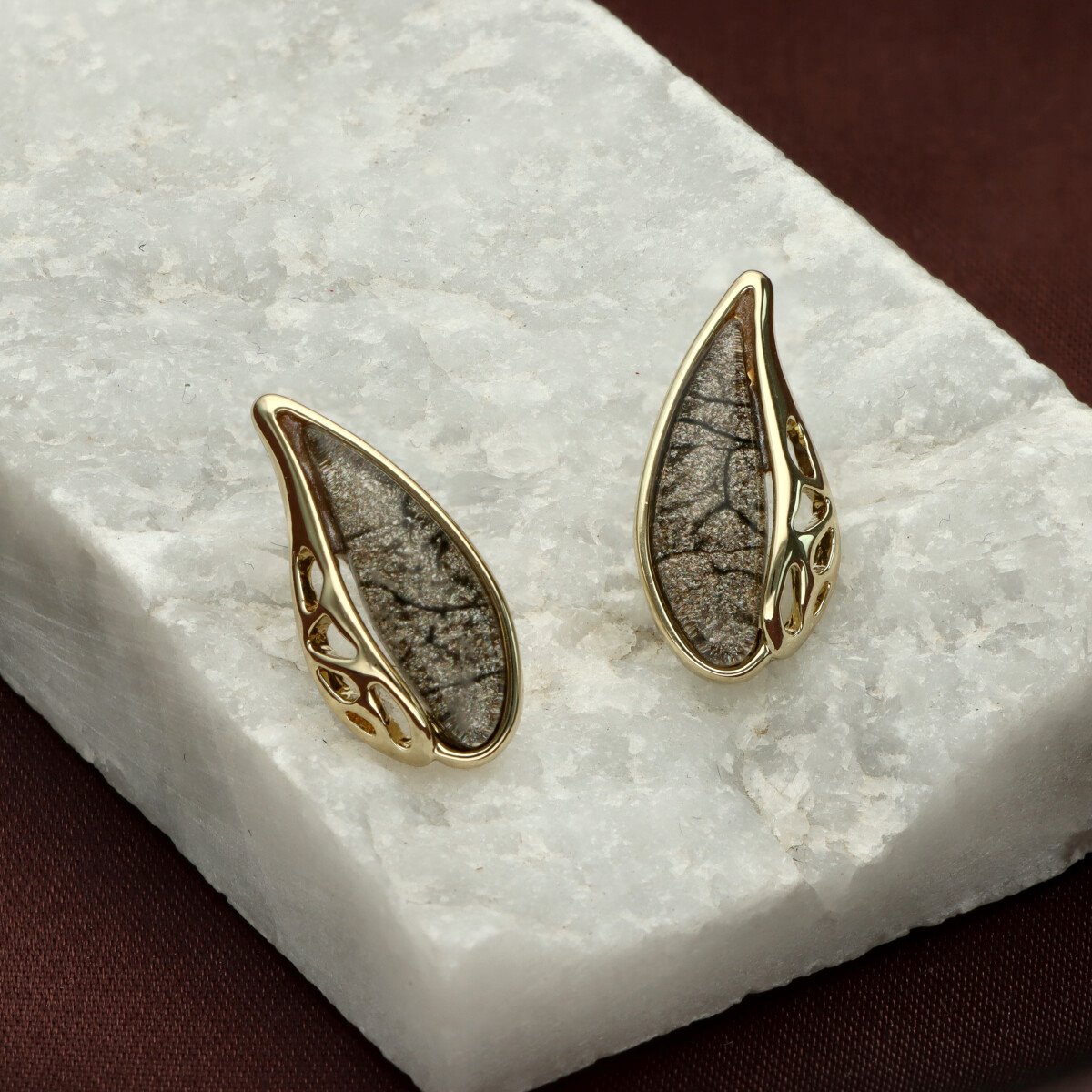 Delikatne kolczyki wykonane z metalu antyalergicznego i żywicy. Długosć ok. 2 cm. Szukaj do kompletu bransoletki i naszyjnika o tym samym indeksie numerycznym.