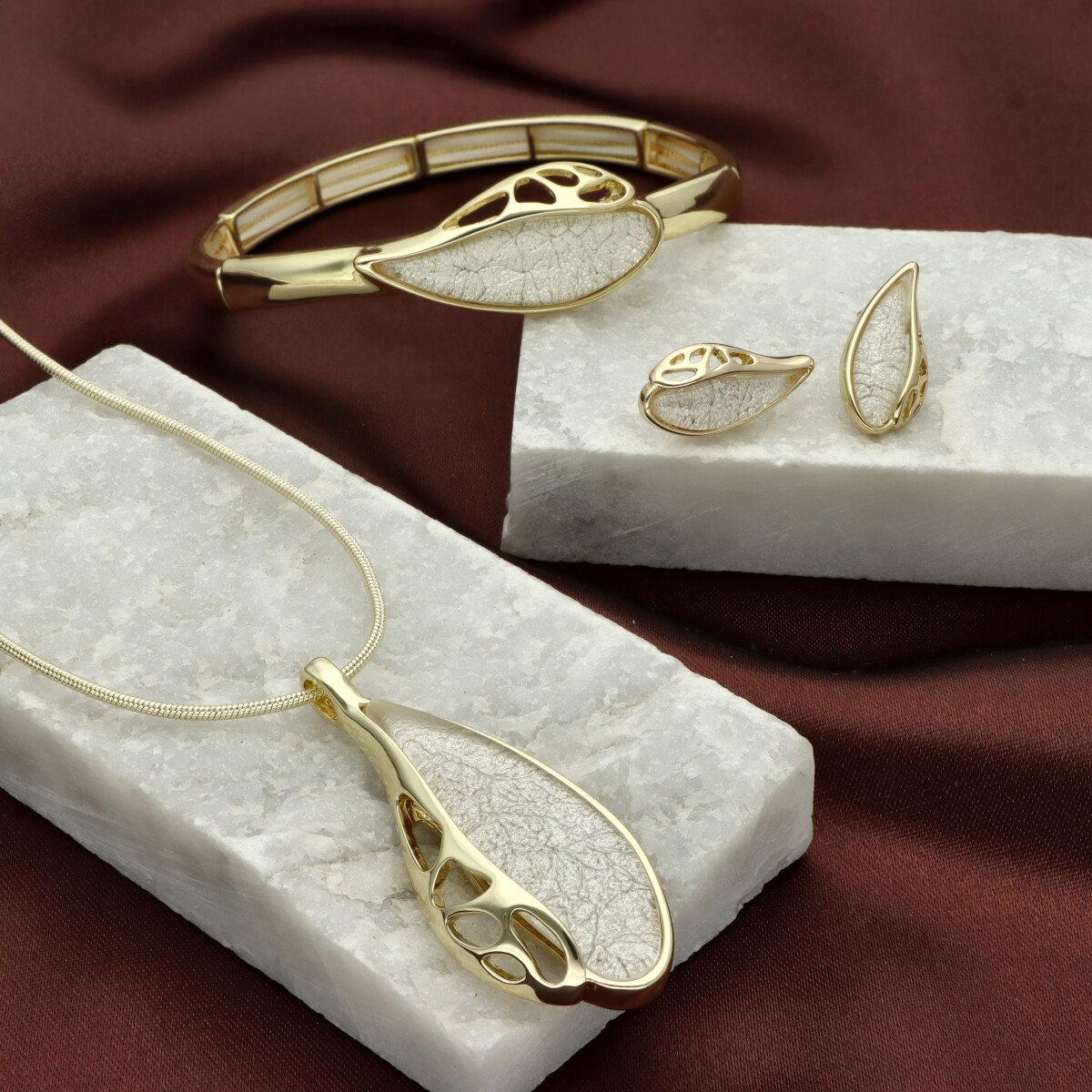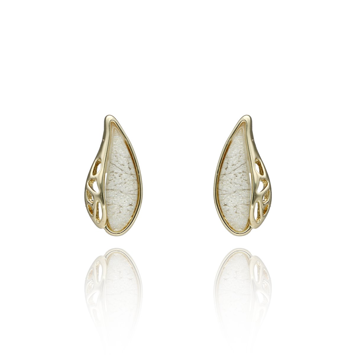 Delikatne kolczyki wykonane z metalu antyalergicznego i żywicy. Długosć ok. 2 cm. Szukaj do kompletu bransoletki i naszyjnika o tym samym indeksie numerycznym.