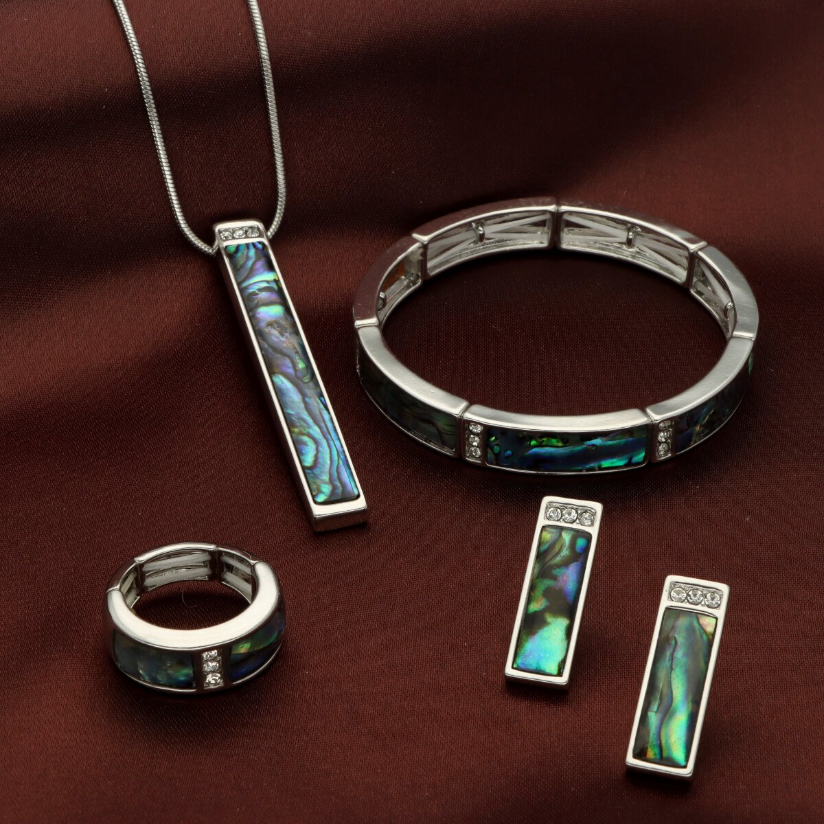 Kolczyki z muszli naturalnej ABALONE – długość ok 2 cm, na sztyfcie. Wyraziste, a jednocześnie lekkie kolczyki na sztyfcie, wykonane z metalu antyalergicznego – bezpieczne nawet dla wrażliwej skóry, ozdobione naturalną muszlą Abalone, tworzące stylowy, artystyczny efekt. Kolczyki świetnie komponują się z naszyjnikiem, pierścionkiem i bransoletką z tej samej serii. Idealne jako samodzielna ozdoba lub element efektownego zestawu biżuterii. Produkt zapakowany jest w efektowne czerwone pudełko. Do kompletu proponujemy Naszyjnik (N), bransoletkęi (B) oraz pierścionek (R) o tym samym indeksie numerycznym.