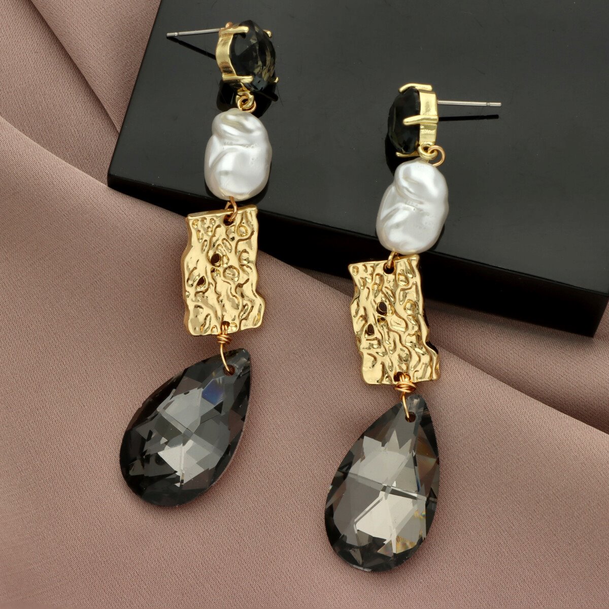Kolczyki Cascada to połączenie subtelnej klasyki z blaskiem fasetowanego szkła. Wykonane ze szkła szlifowanego i szklanej perełki, w oprawie z metalu antyalergicznego. Długość ok. 8 cm. Całość sprawia, że pięknie eksponują się na uchu, dodając elegancji zarówno wieczorowym, jak i codziennym stylizacjom.