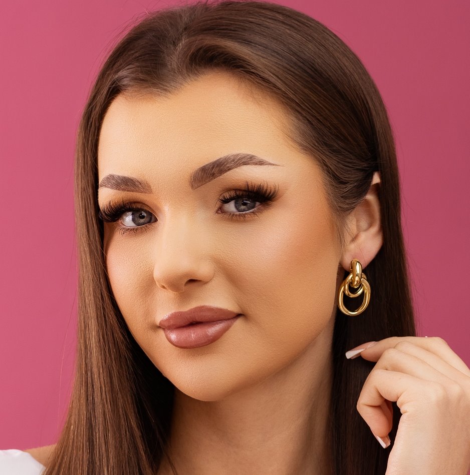 Stylowe kolczyki o geometrycznej formie, które doskonale sprawdzą się zarówno w codziennych, jak i bardziej wyrafinowanych stylizacjach. Model o długości około 2 cm subtelnie podkreśla urodę i dodaje elegancji. Kolczyki wykonane są z wysokiej jakości mosiądzu – materiału cenionego w jubilerstwie za trwałość, odporność na odkształcenia oraz estetyczny, szlachetny wygląd. Wykończone w modnym odcieniu light gold, inspirowanym włoskim złotem – jasnym, eleganckim kolorem, który obecnie dominuje w najnowszych trendach biżuteryjnych.