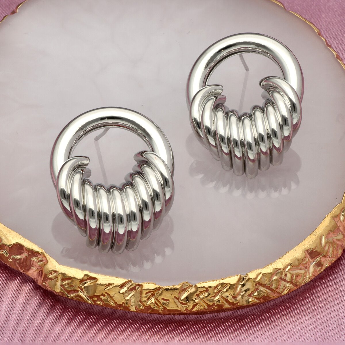 Kolczyki wykonane są z wysokiej jakości mosiądzu – materiału cenionego w jubilerstwie za trwałość, odporność na odkształcenia oraz estetyczny, szlachetny wygląd.