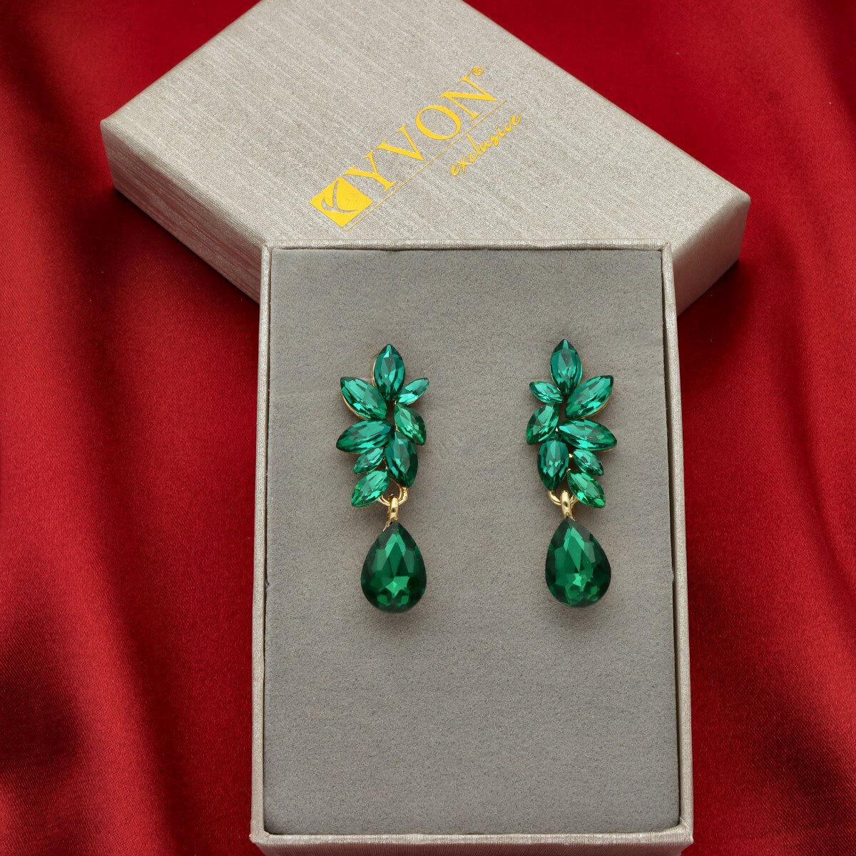 Kolczyki zostały wykonane z metalu hipoalergicznego oraz szkła fasetowanego, które efektownie odbija światło i nadaje całości szlachetnego charakteru. To doskonały wybór na przyjęcia, uroczystości rodzinne, wesela oraz inne wyjątkowe okazje.