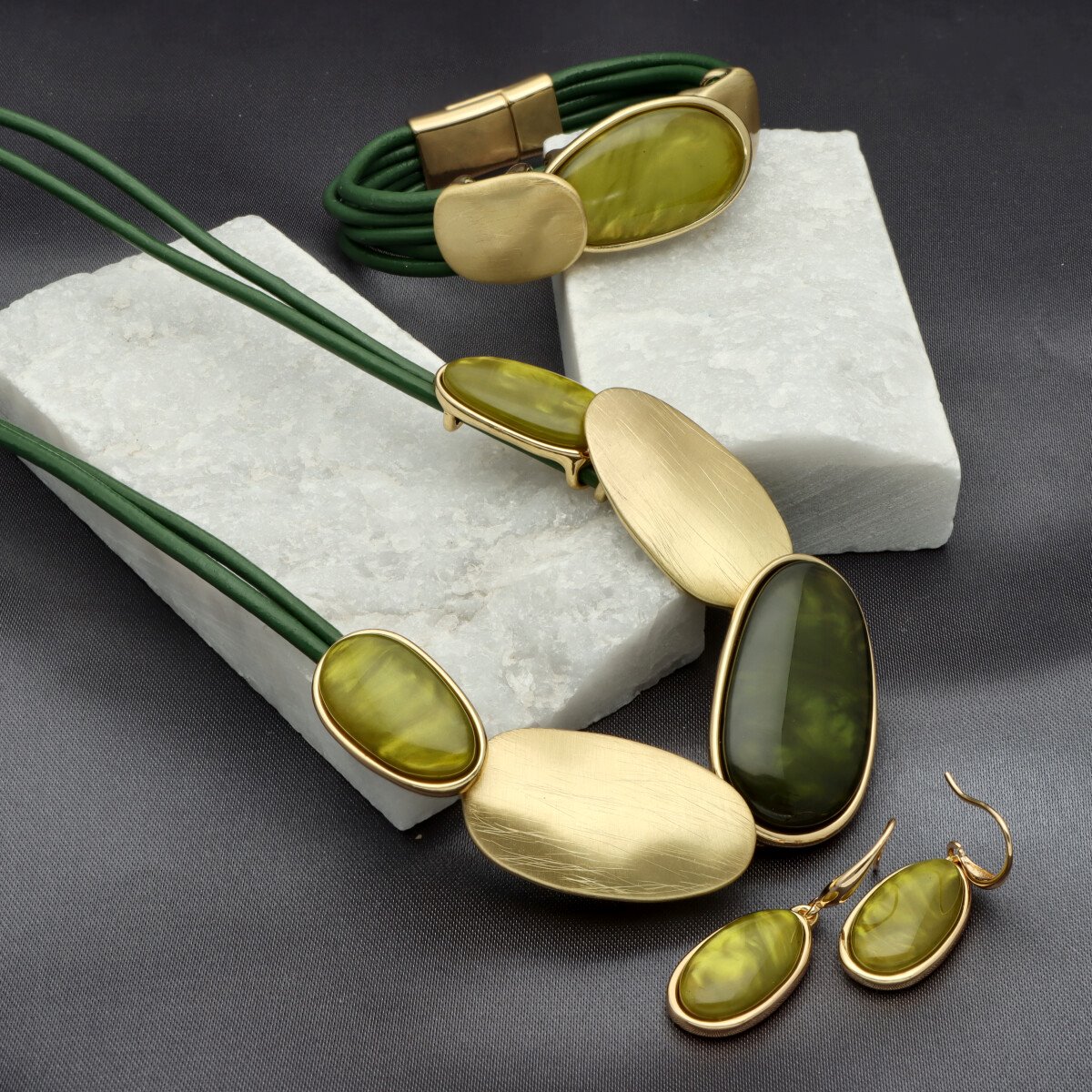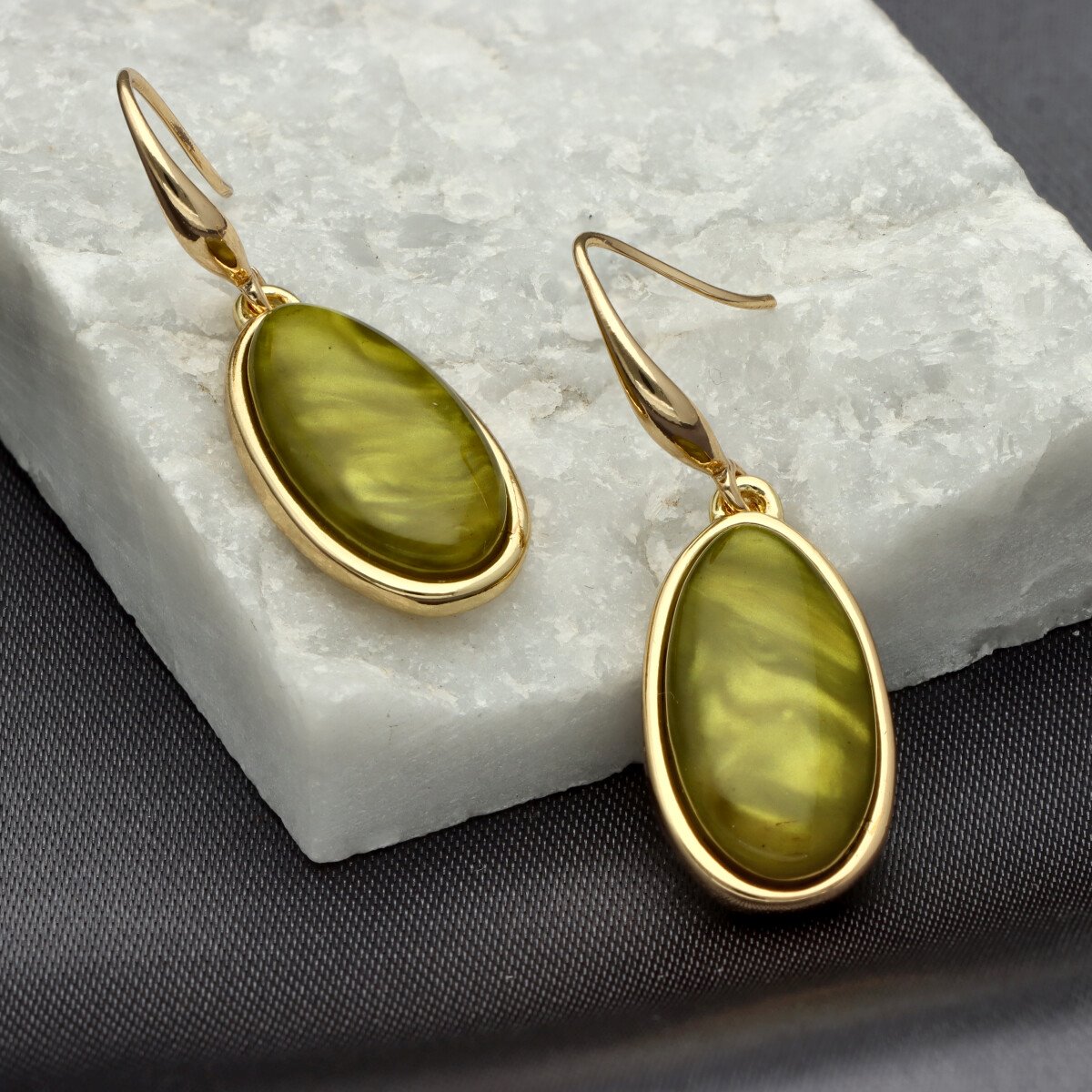 Eleganckie kolczyki wykonane z wysokiej jakości metalu antyalergicznego, zdobione kolorową żywicą. Ich subtelna długość (ok. 4 cm) sprawia, że są idealnym wyborem do różnych stylizacji.