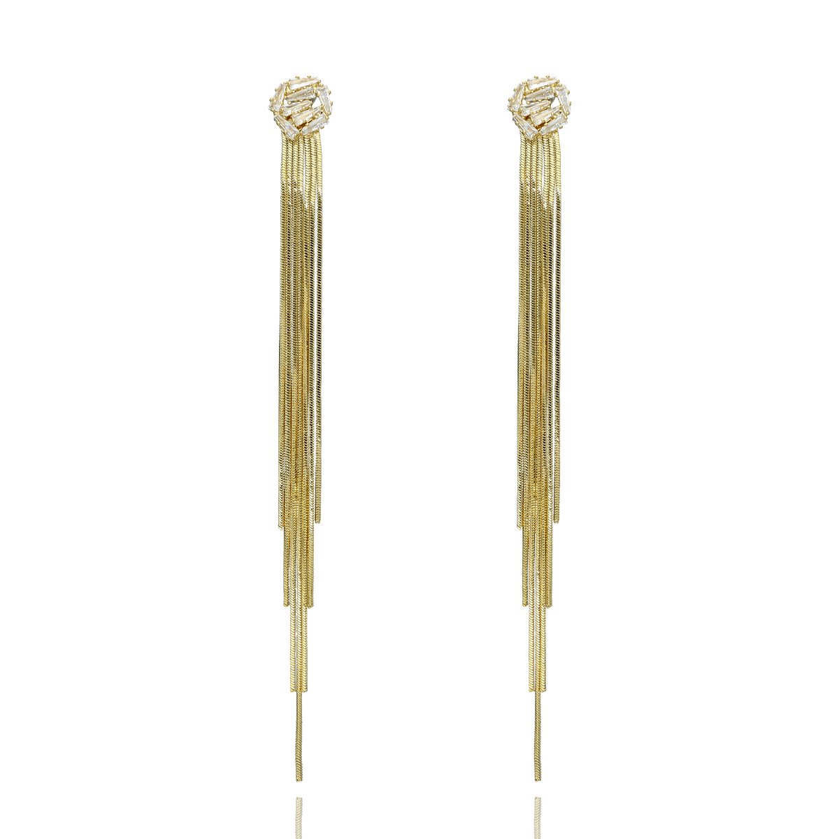 Wyjątkowe kolczyki wykonane z hipoalergicznego metalu na bazie mosiądzu, ozdobione wysokiej jakości cyrkoniami, które pięknie odbijają światło i nadają biżuterii eleganckiego blasku. To idealny wybór dla osób, które cenią sobie wyrafinowane dodatki podkreślające charakter stylizacji. Kolczyki są lekkie, starannie wykończone i doskonale prezentują się zarówno na co dzień, jak i przy specjalnych okazjach. Długość: ok. 10 cm