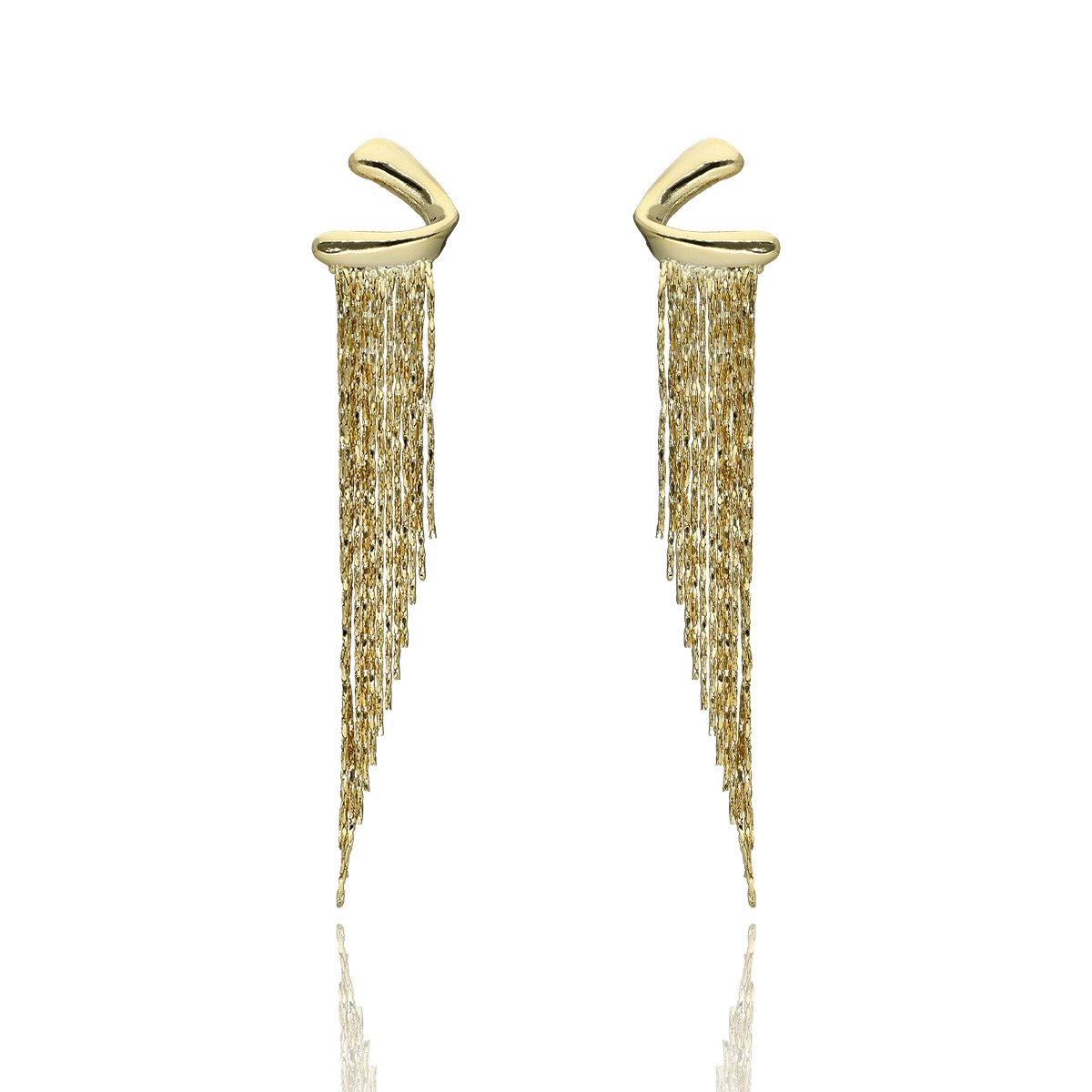 Eleganckie kolczyki wykonane z hipoalergicznego metalu na bazie mosiądzu, zachwycają swoim nowoczesnym, efektownym designem. Delikatne, a jednocześnie przyciągające wzrok – idealne jako stylowe uzupełnienie zarówno codziennych, jak i wieczorowych stylizacji. Dzięki starannemu wykończeniu kolczyki są lekkie, komfortowe w noszeniu i odporne na codzienne użytkowanie. Długość: 8 cm