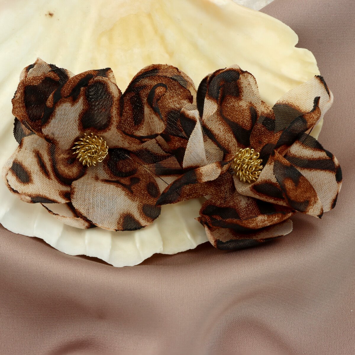 Kolczyki wykonane z lekkiego materiału w modny panterkowy wzór. Dzięki połączeniu z metalem hipoalergicznym wysokiej jakości są komfortowe w noszeniu i bezpieczne nawet dla wrażliwej skóry. Ich efektowna forma wprowadza odrobinę drapieżnego charakteru do każdej stylizacji, zarówno codziennej, jak i wieczorowej. Długość: 5 cm.