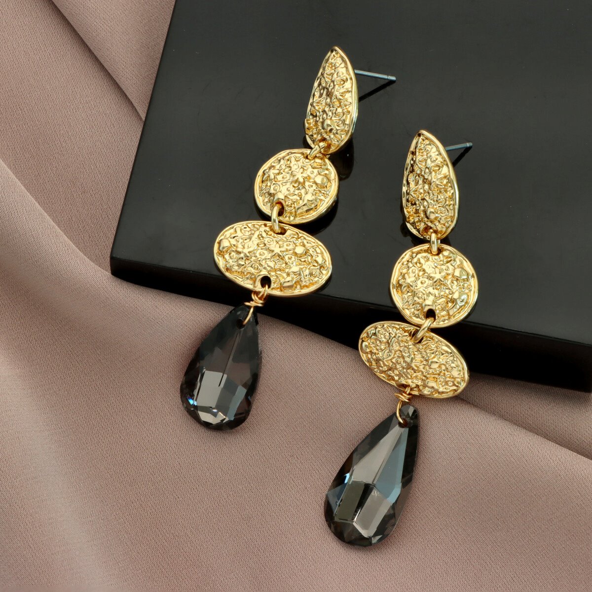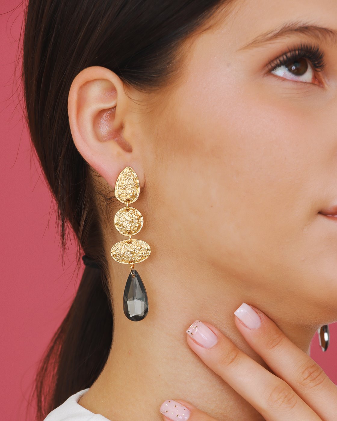 Kolczyki Sol d'Oro to połączenie subtelnej klasyki z blaskiem fasetowanego szkła. Wykonane z inkrustowanego hipoalergicznego metalu i szkła szlifowanego. Długość ok. 7 cm. Całość sprawia, że pięknie eksponują się na uchu, dodając elegancji zarówno wieczorowym, jak i codziennym stylizacjom.