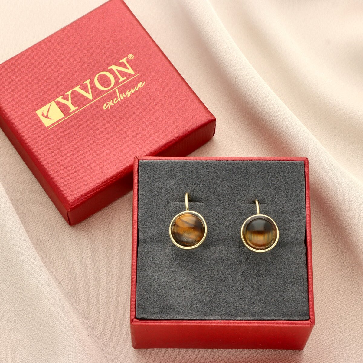 Eleganckie kolczyki z naturalnym kamieniem tygrysie oko (Tiger Eye) to połączenie klasyki i nowoczesnej formy. Okrągłe kamienie w głębokim, złoto-brązowym odcieniu z charakterystycznym połyskiem pięknie komponują się ze złotymi elementami.