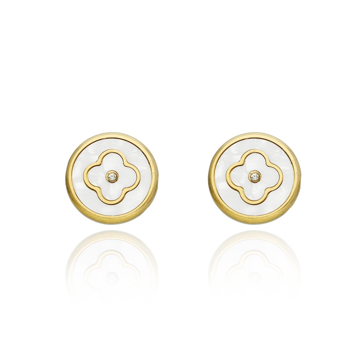 Kolczyki wykonane z hipoalergicznej stali szlachetnej 316L, pozłacanej 16-karatowym złotem. Odznaczają się wyjątkową odpornością na ścieranie i trwałym połyskiem.