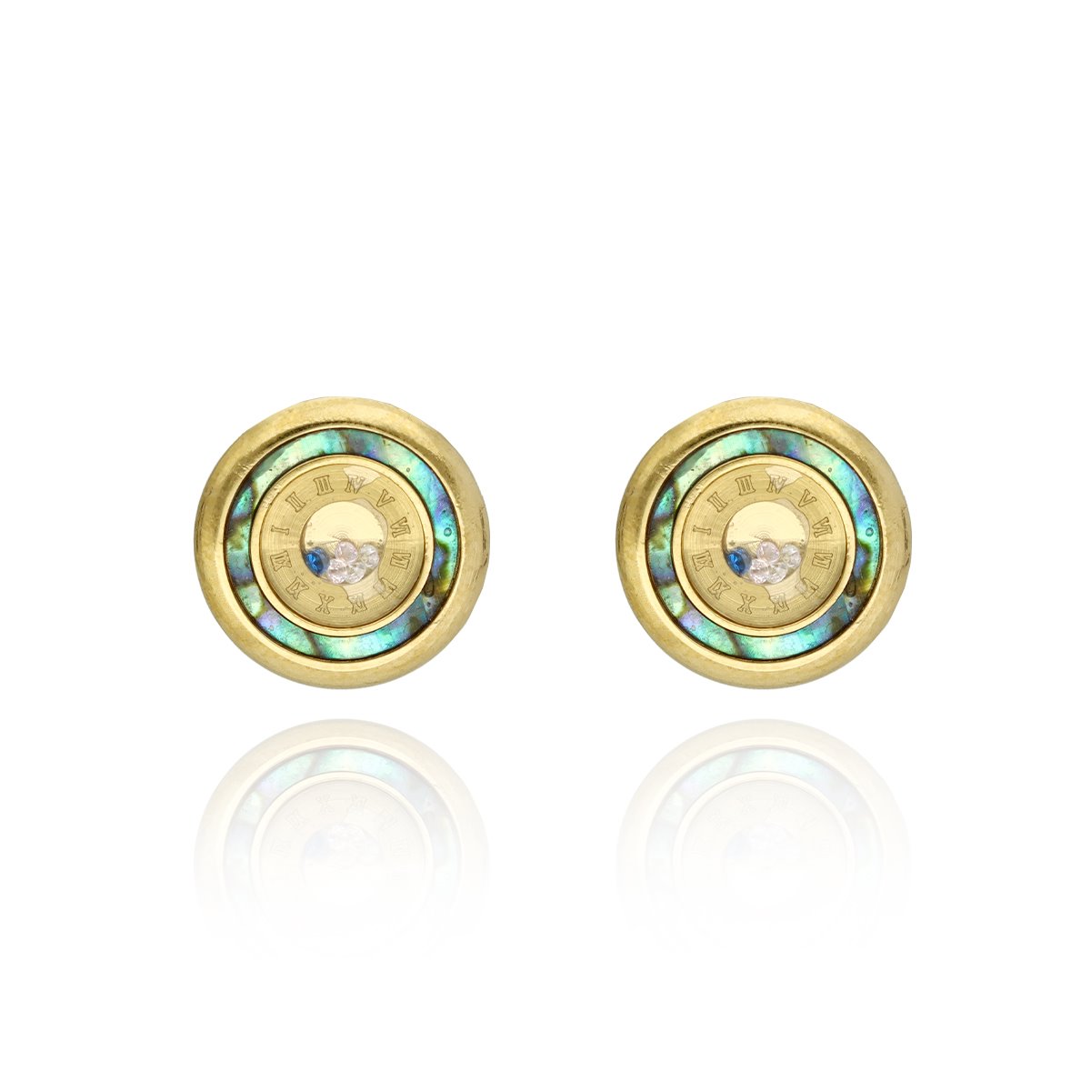 Kolczyki wykonane z muszli naturalnej ABALONE, hipoalergicznej stali szlachetnej 316L, pozłacanej 16-karatowym złotem. Odznaczają się wyjątkową odpornością na ścieranie i trwałym połyskiem.