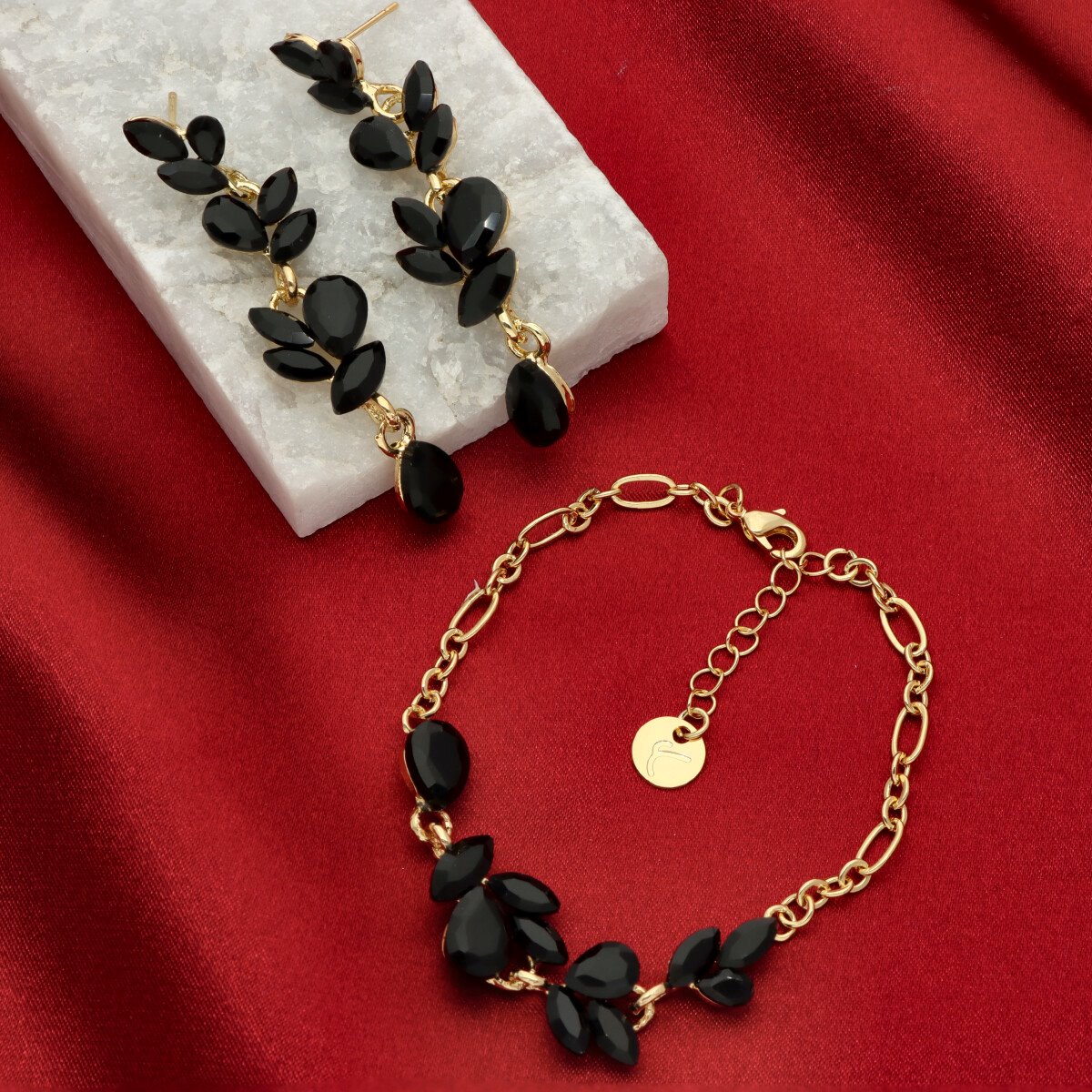 Uroczy, niezwykle kobiecy zestaw biżuterii wizytowej, który subtelnie podkreśla elegancję stylizacji. Komplet składa się z regulowanej bransoletki oraz efektownych kolczyków o długości 6 cm, które pięknie wysmuklają szyję i dodają lekkości całej sylwetce. Biżuteria została wykonana z metalu HIPOALERGICZNEGO oraz szkła fasetowanego dymionego, dzięki czemu delikatnie odbija światło i tworzy elegancki, szlachetny efekt. To idealna propozycja na przyjęcia, uroczystości rodzinne, wesela oraz inne wyjątkowe okazje. Całość zapakowana jest w prześliczne PUDEŁKO, dzięki czemu komplet doskonale sprawdzi się również jako gotowy pomysł na PREZENT.