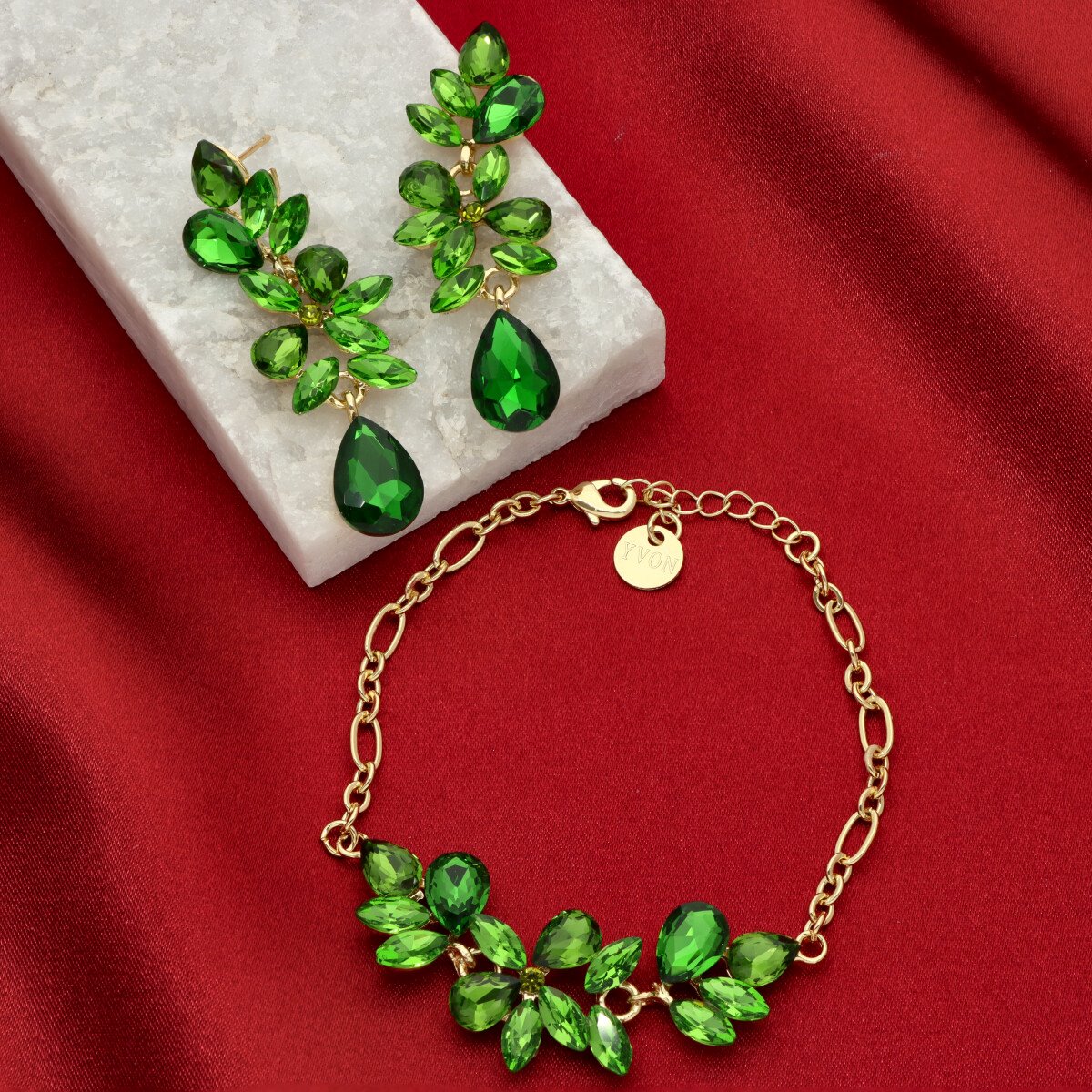 Biżuteria została wykonana z metalu HIPOALERGICZNEGO oraz szkła fasetowanego, dzięki czemu pięknie odbija światło i tworzy elegancki, szlachetny efekt. To idealna propozycja na przyjęcia, uroczystości rodzinne, wesela oraz inne wyjątkowe okazje.