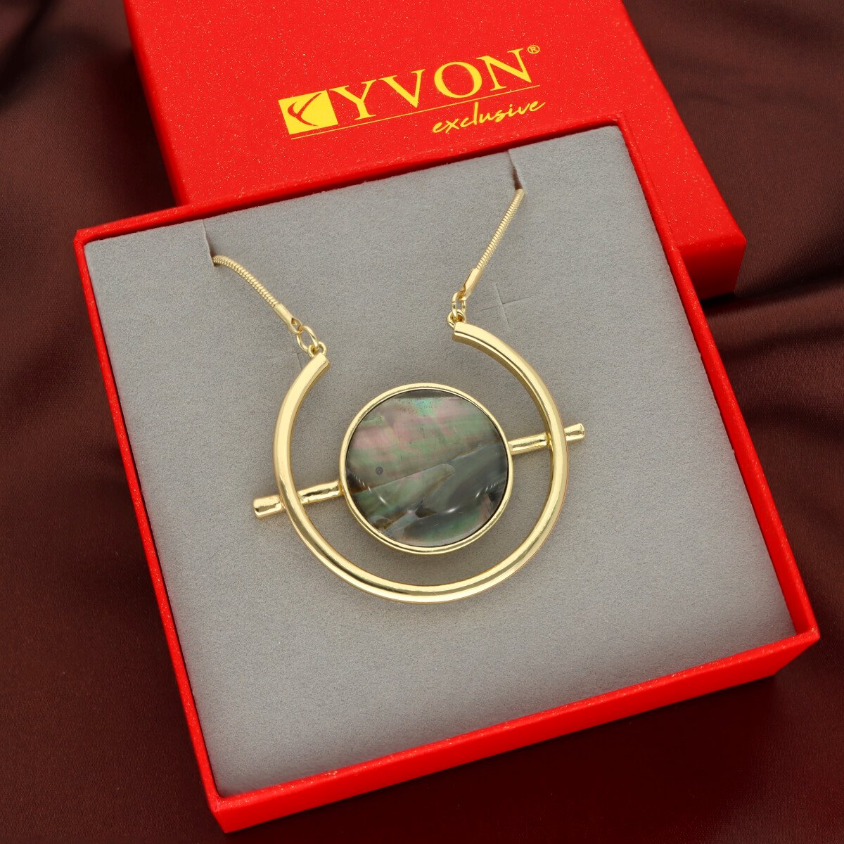 Naszyjnik zapakowany jest w efektowne czerwone pudełko.