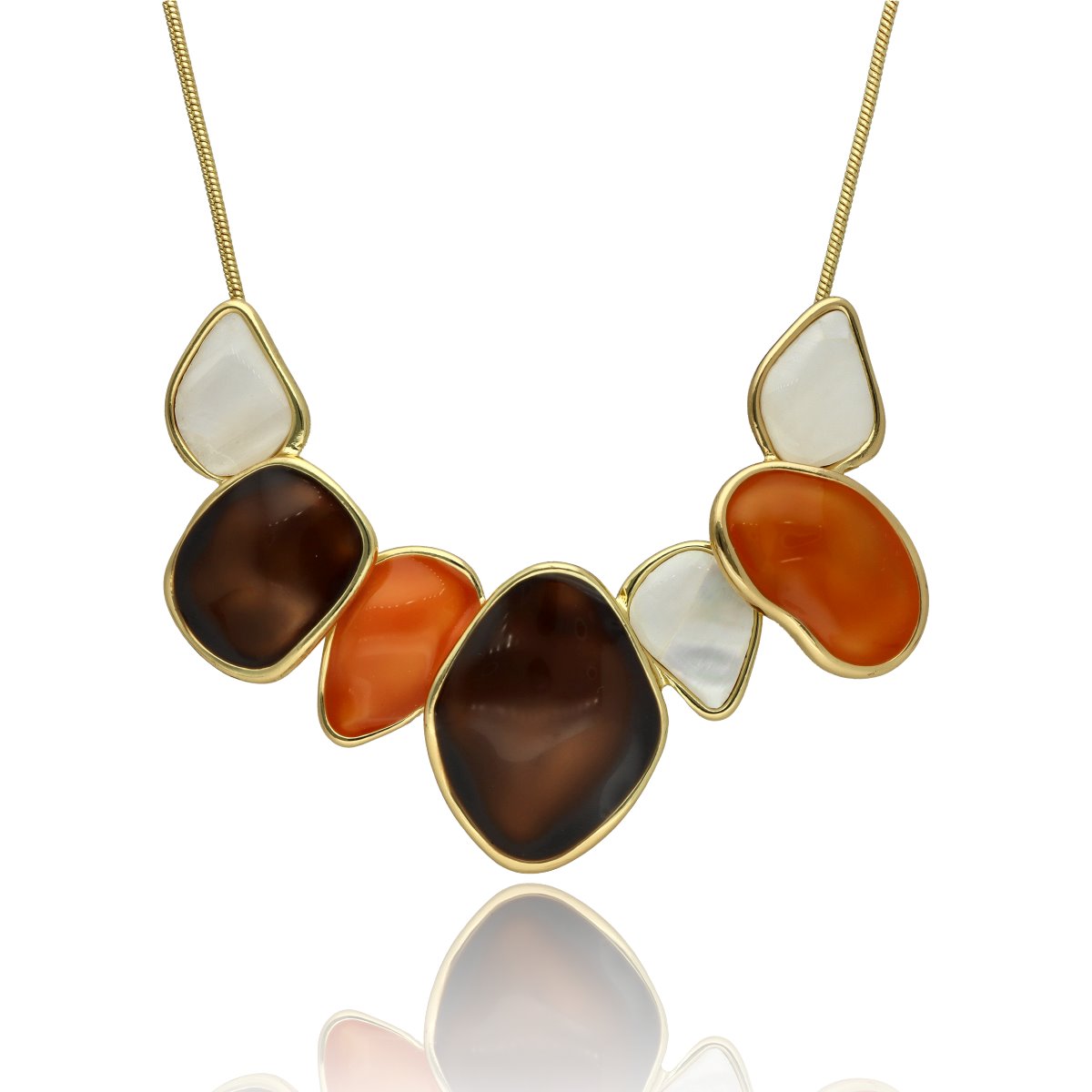Wyjątkowy naszyjnik dekoltowy wykonany z kolorowej żywicy, emalii i muszli naturalnej. Hipoalergiczny. Długość bazowa 45 cm z możliwością regulacji (+8 cm) pozwala na idealne dopasowanie do różnych stylizacji.