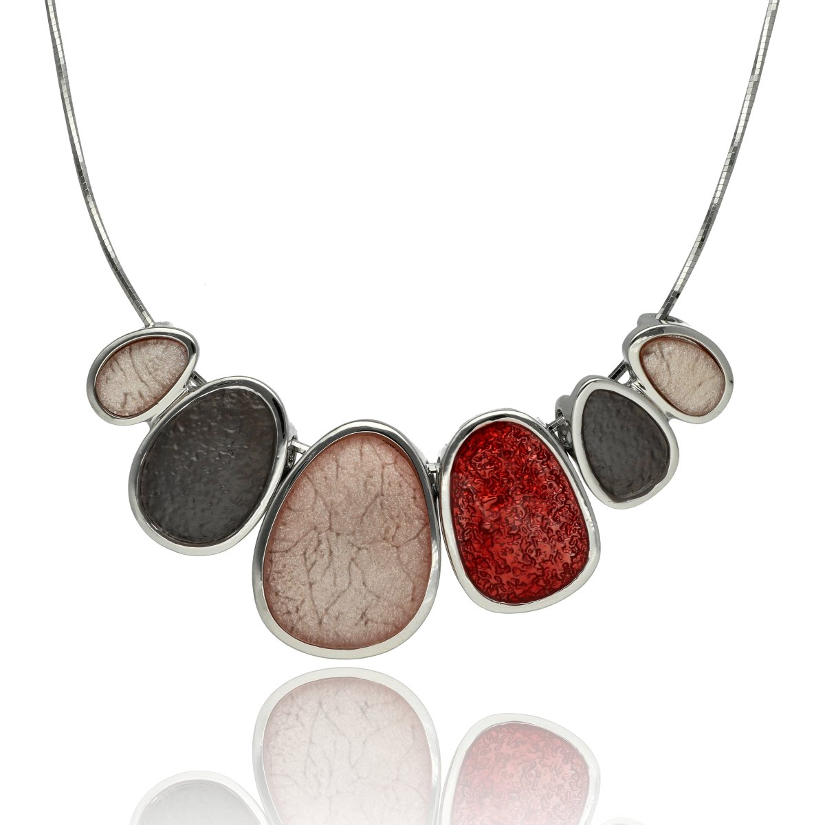 Naszyjnik wykonany z hipoalergicznego metalu (zamak – stop cynku, bezpieczny dla wrażliwej skóry), ozdobiony kolorową emalią oraz żywicą z efektem głębi.