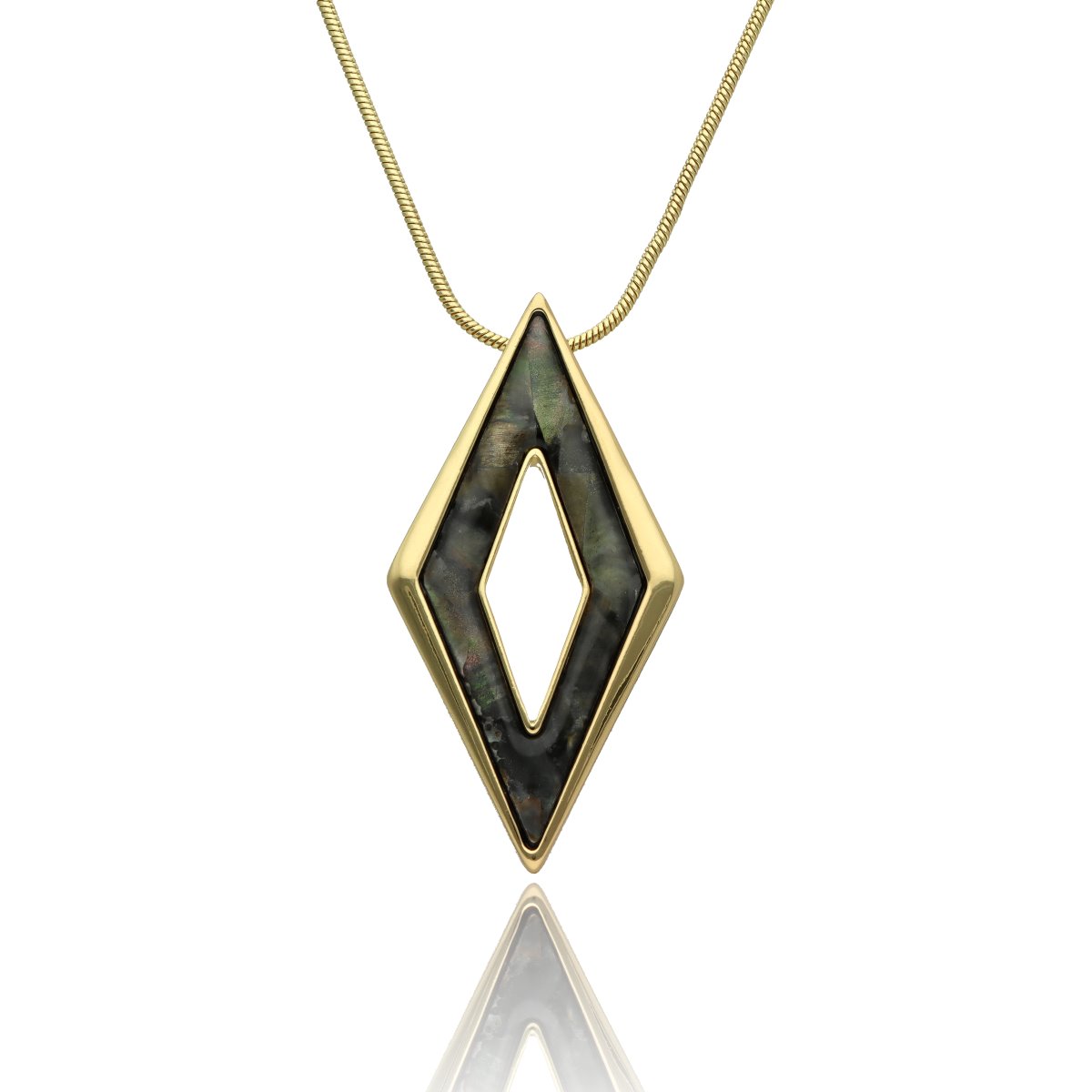 Elegancki, długi naszyjnik wykonany z metalu antyalergicznego, ozdobiony efektowną zawieszką o długości ok. 5 cm. Zawieszka została wykonana z naturalnej muszli szarej, tworząc harmonijne, przyciągające uwagę połączenie.