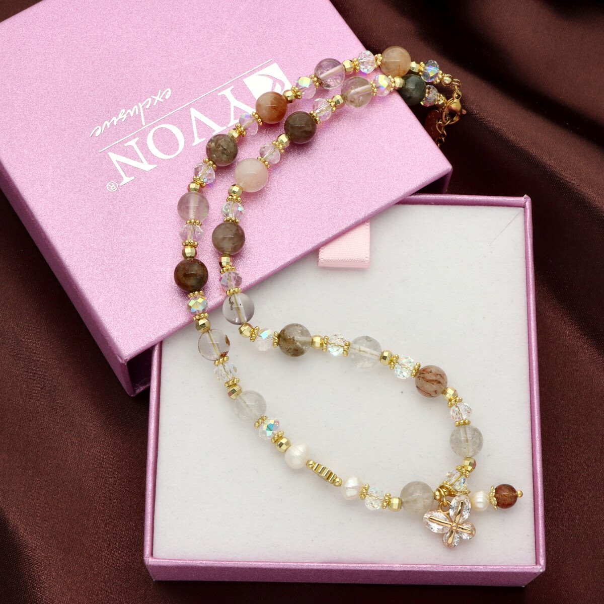 Ekskluzywny naszyjnik z kolekcji LOVELY STONES wykonany z najwyższej jakości mosiądzu oraz kwarcu rutylowego, kryształu górskiego, cyrkonii. Długość: 42 cm + regulacja.